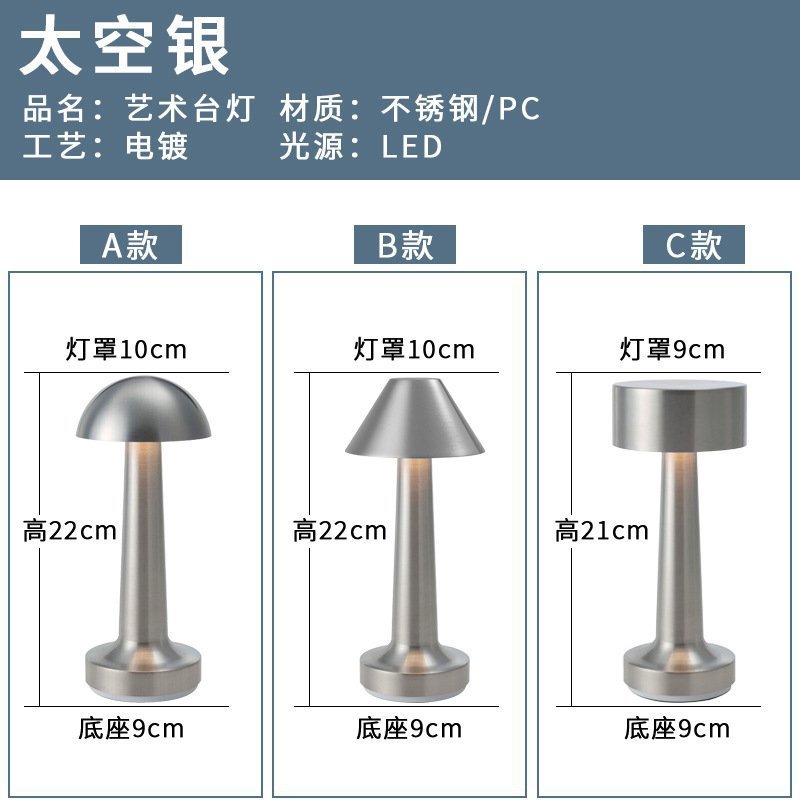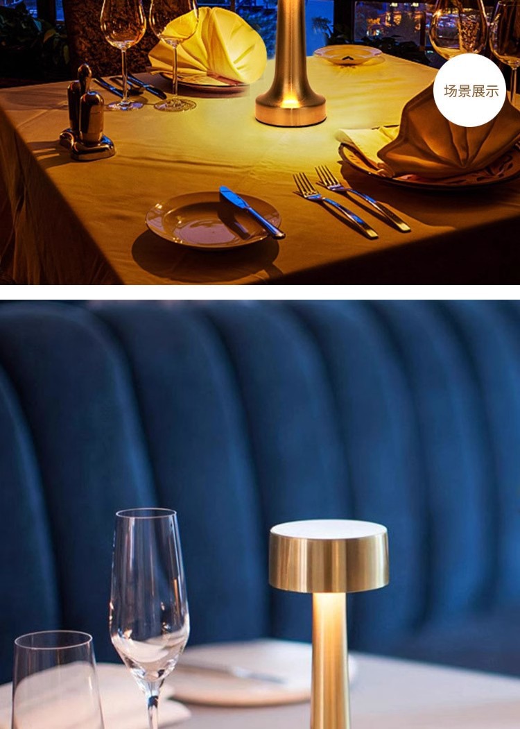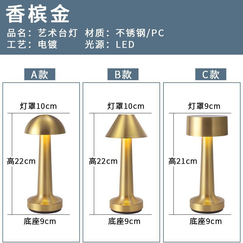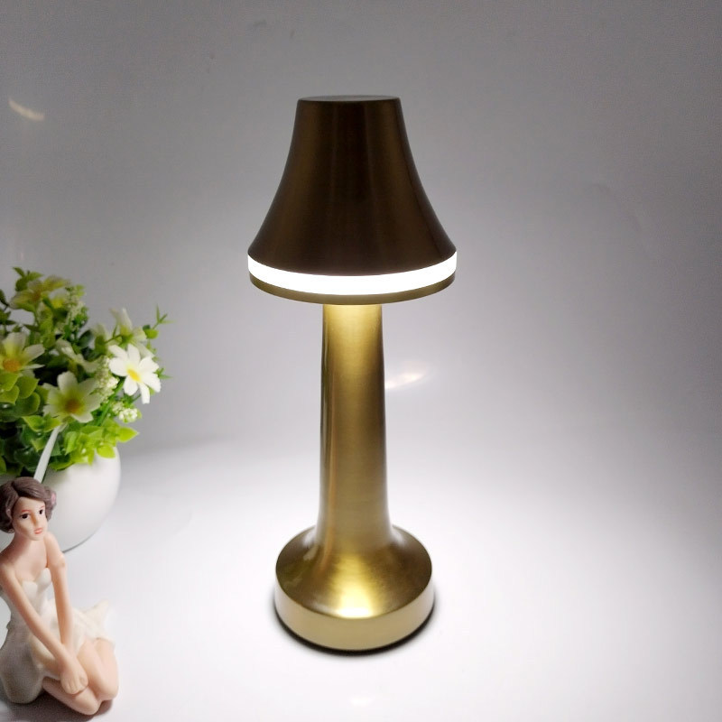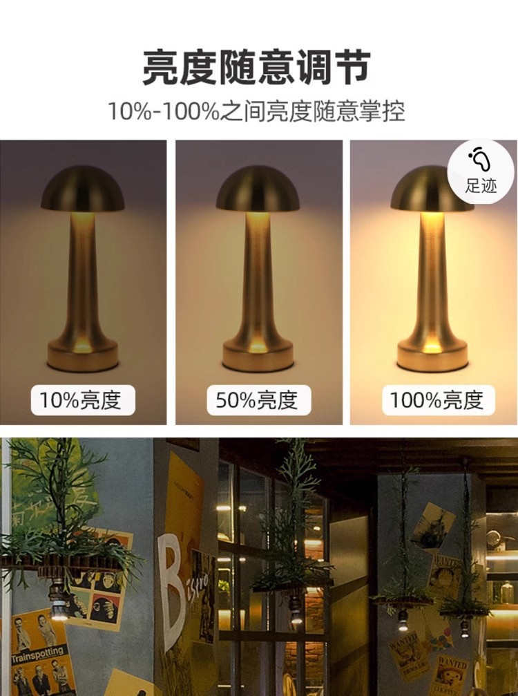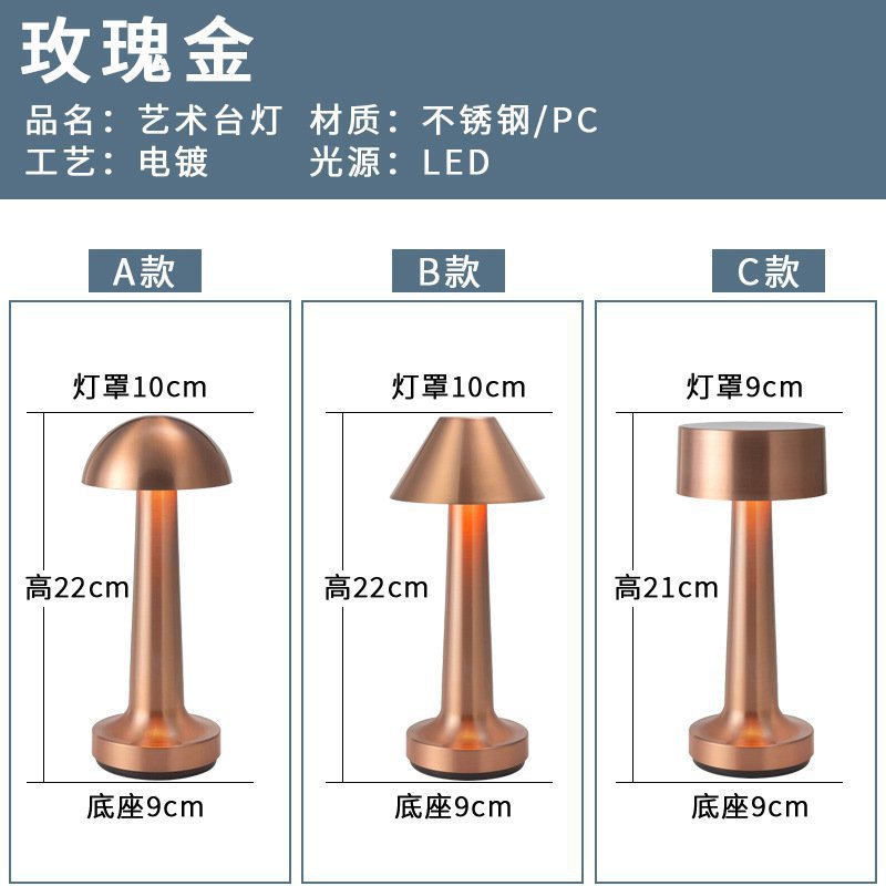 跨境北欧复古铜色书房蘑菇充电台灯哑铃高端餐厅床头便携氛围灯