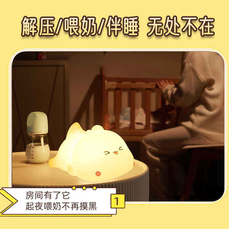 趴趴龙硅胶拍拍灯卧室氛围灯伴睡夜灯喂奶送女生生日礼物小夜灯