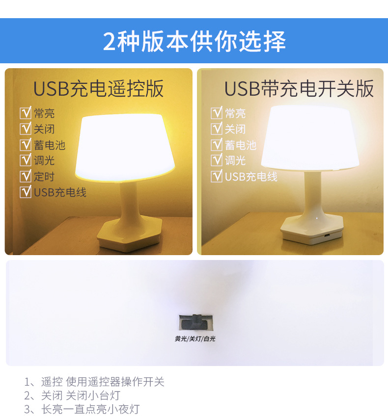 台灯遥控led小夜灯护眼起夜喂奶床头灯usb充电喂奶灯调光氛围台灯