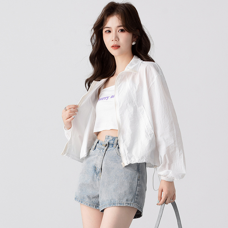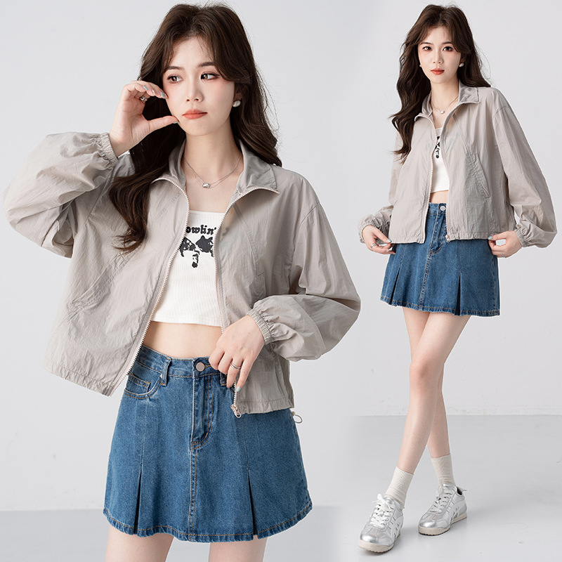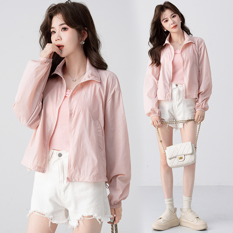 韩版防晒衣女夏季新款立领下摆抽绳小个子短款透气户外防蚊服上衣