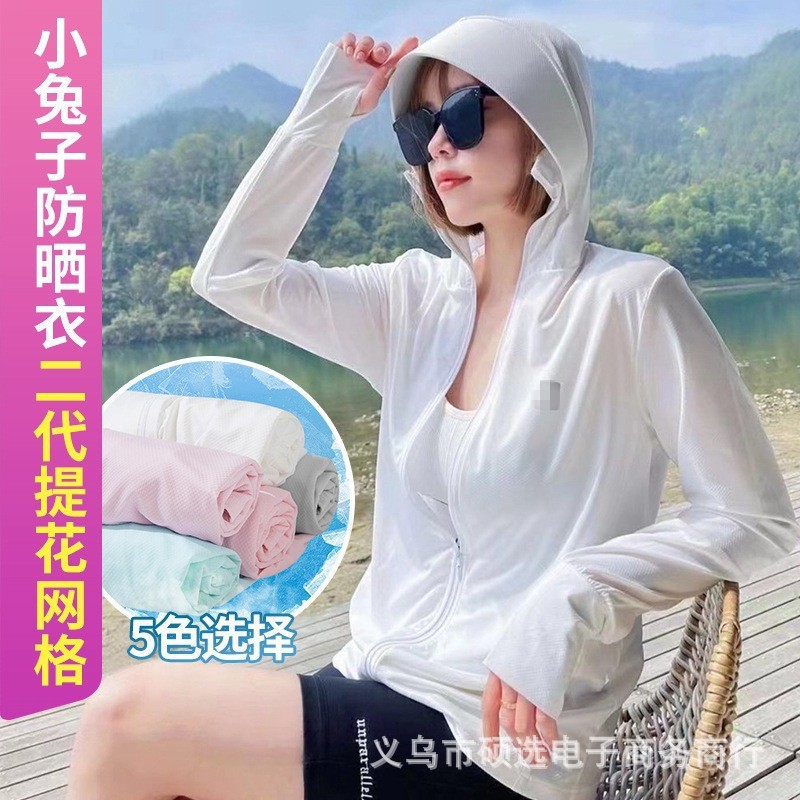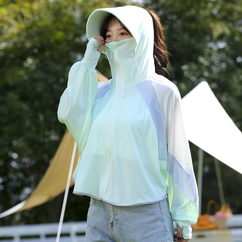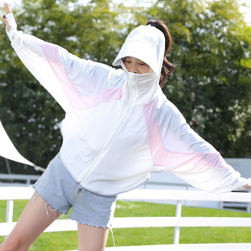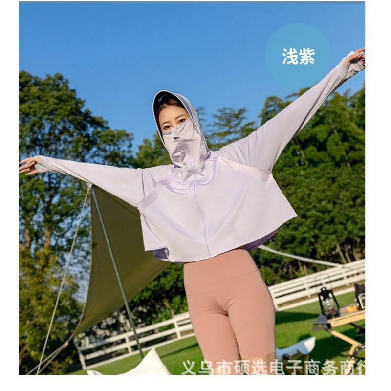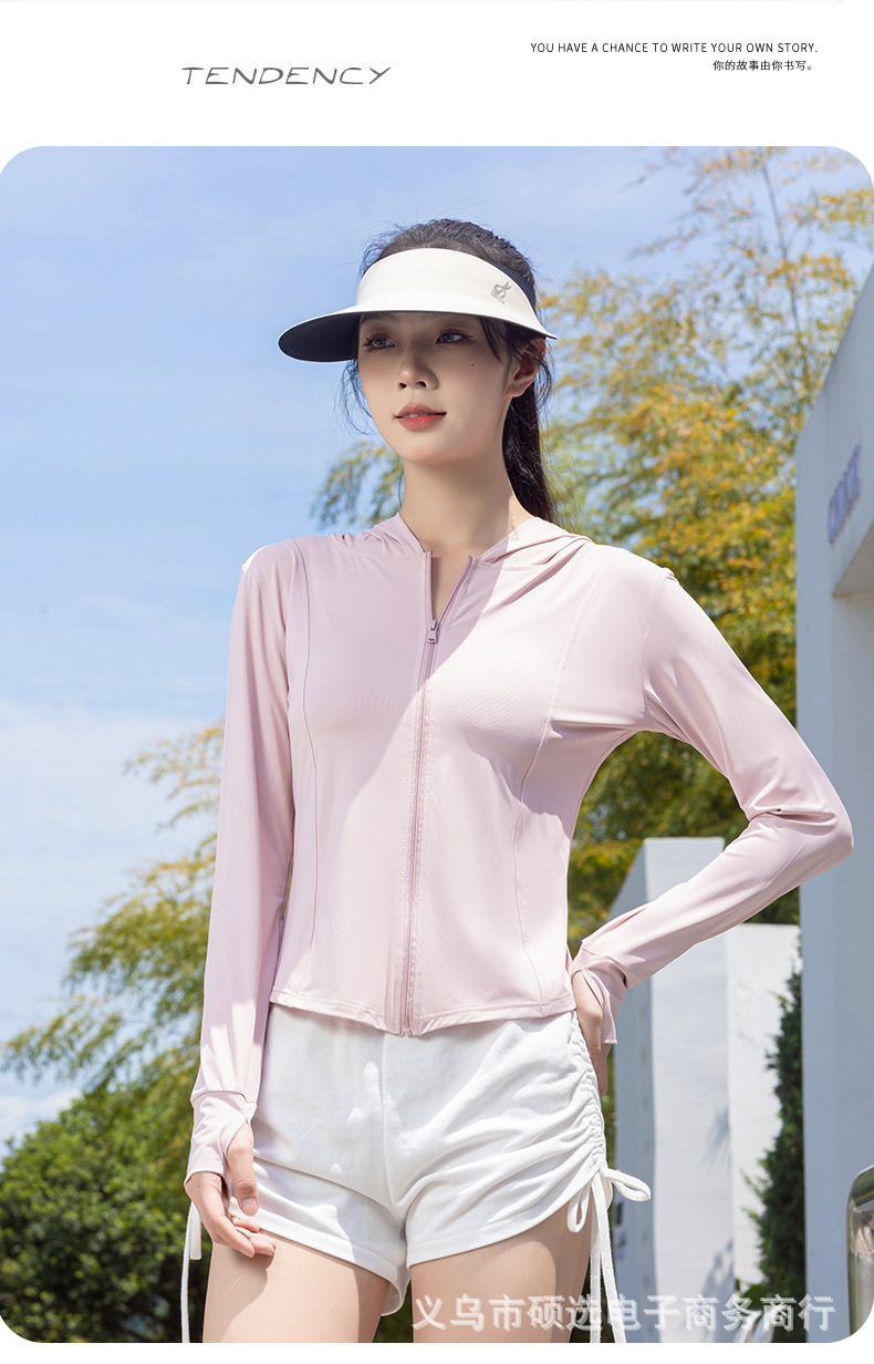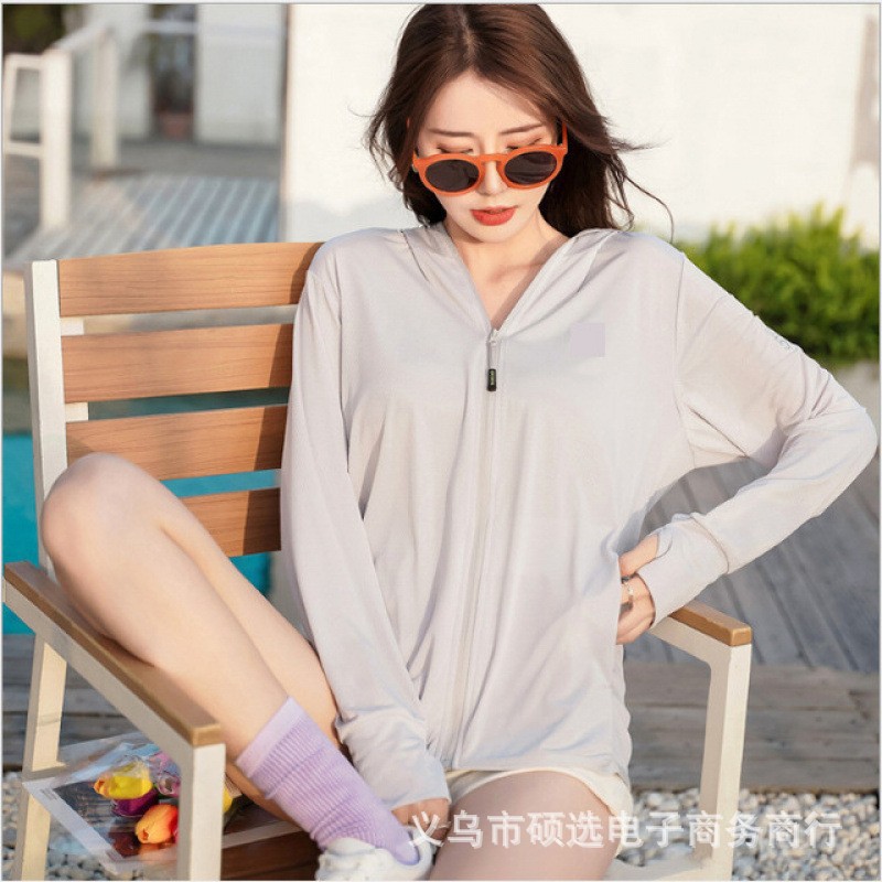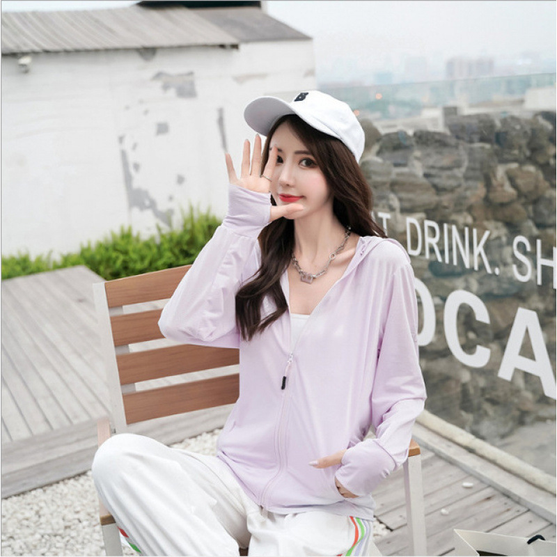 冰丝防晒衣女夏季薄款防紫外线百搭防晒服宽松运动户外连帽外套女