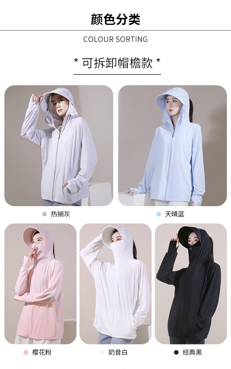 冰丝帽檐可拆卸防晒衣女2025夏季新款骑车防紫外线大帽檐防晒服薄