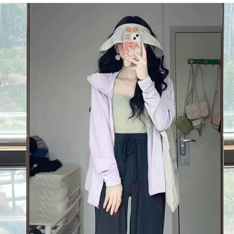 2024夏季冰丝防晒衣女外穿夏季纯色透气薄款宽松外套女