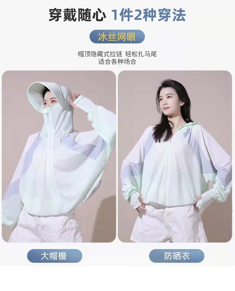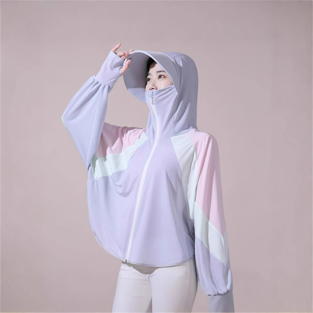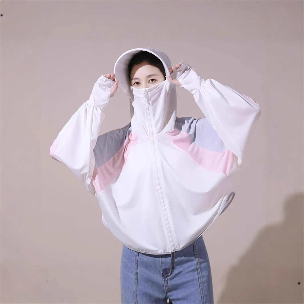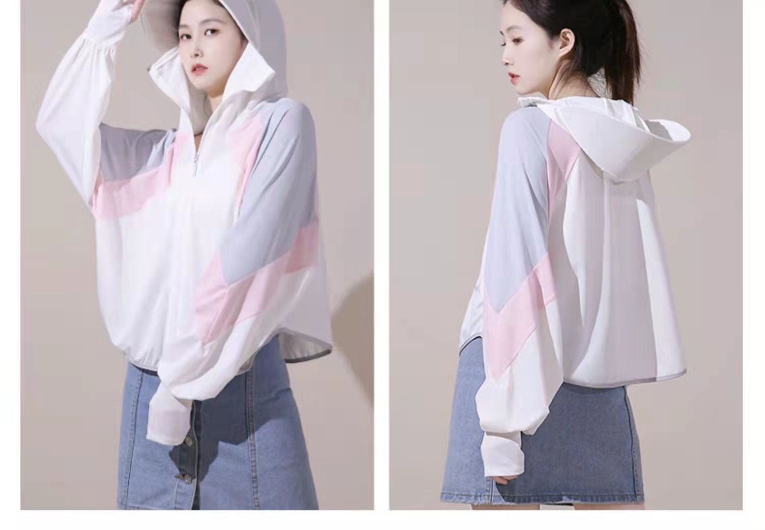 2025年撞色拼接防晒衣女夏季薄款冰丝防晒连帽外套高级感时尚防晒