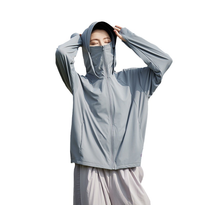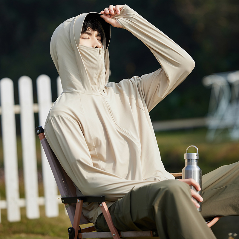 夏季冰丝防晒衣女UPF50+原纱凉感防晒服男大帽檐可拆卸薄款骑行服