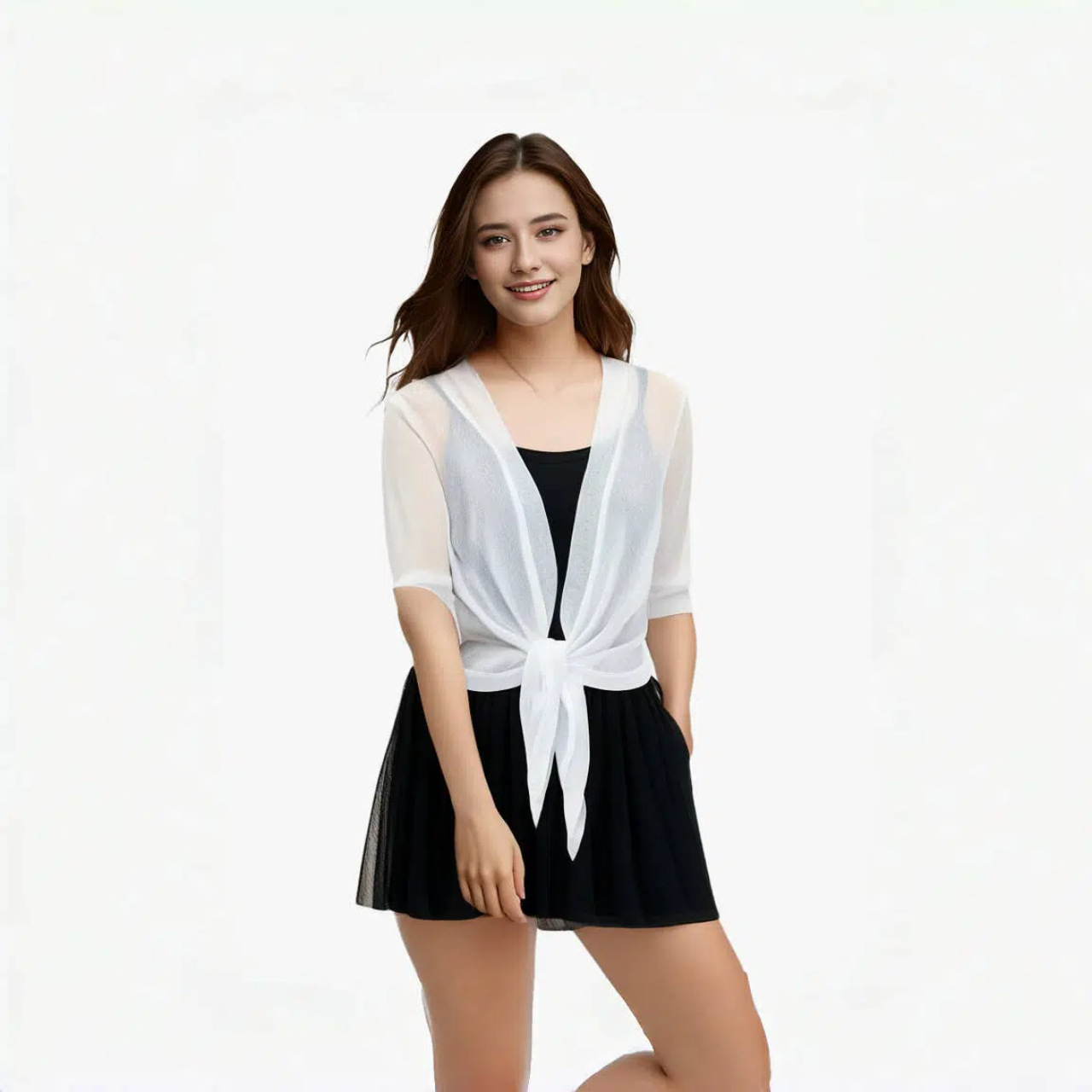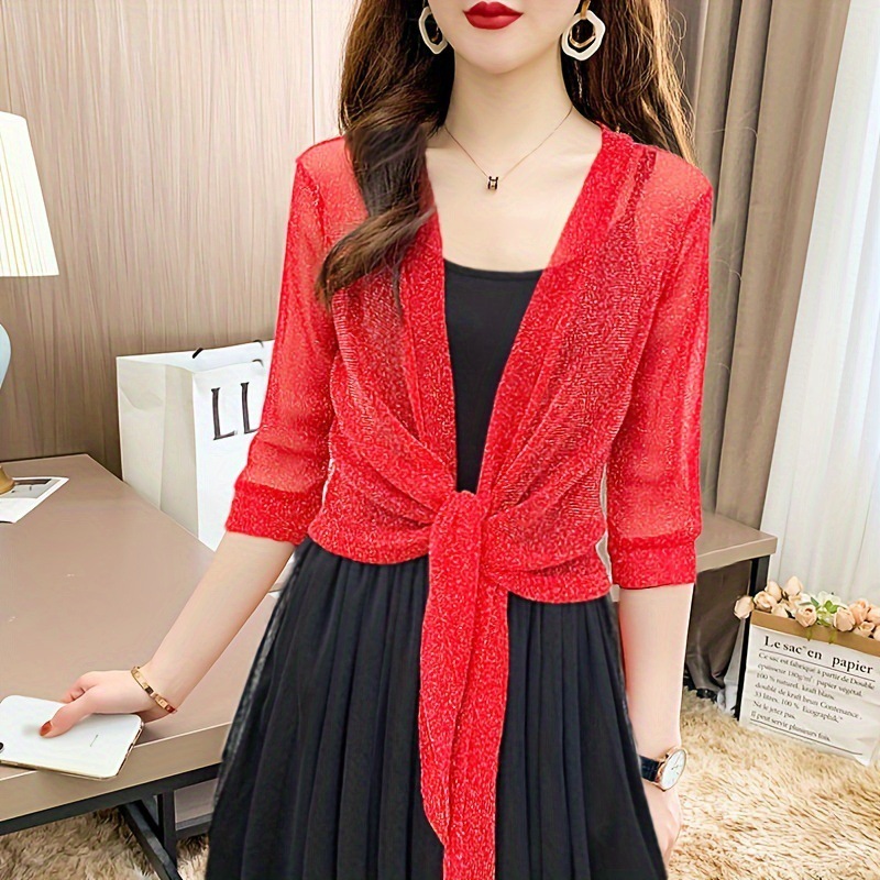 2024夏季透气防晒服小披肩外套女开衫网纱短款外搭洋气防晒金银丝