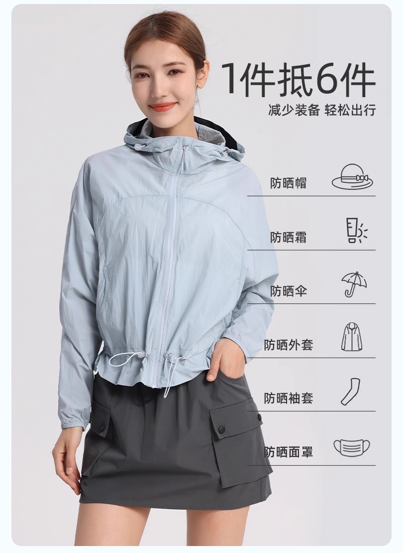 某蕉轻壳防晒衣UPF50+女春夏透气速干防紫外线透气短款收腰防晒服