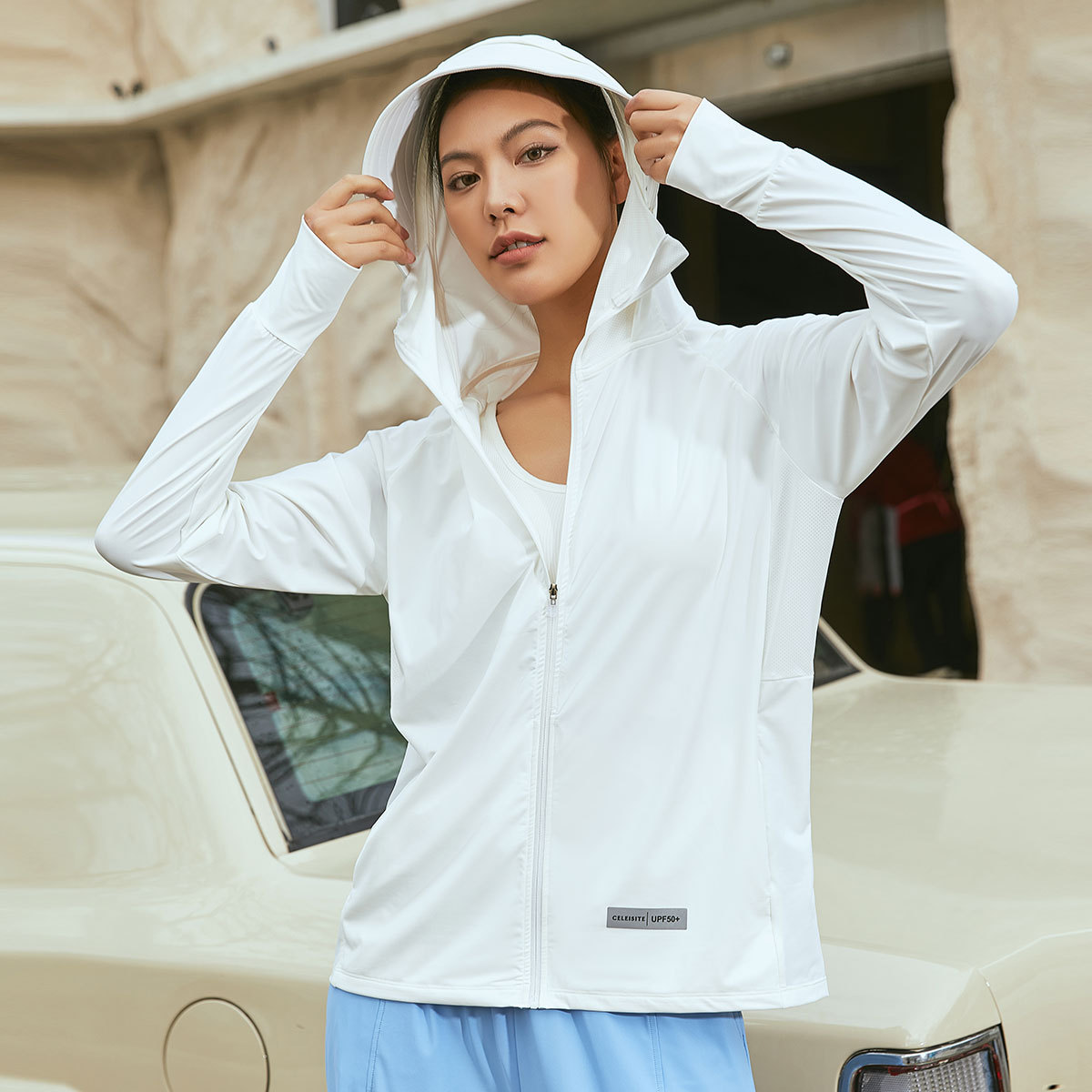防晒衣户外防紫外线轻薄透气皮肤衣夏季冰感运动连帽服上衣外套女
