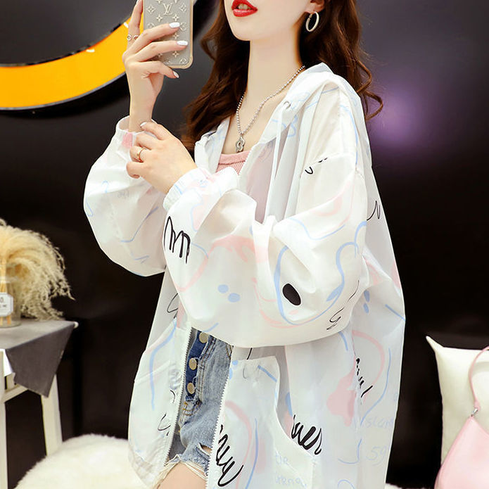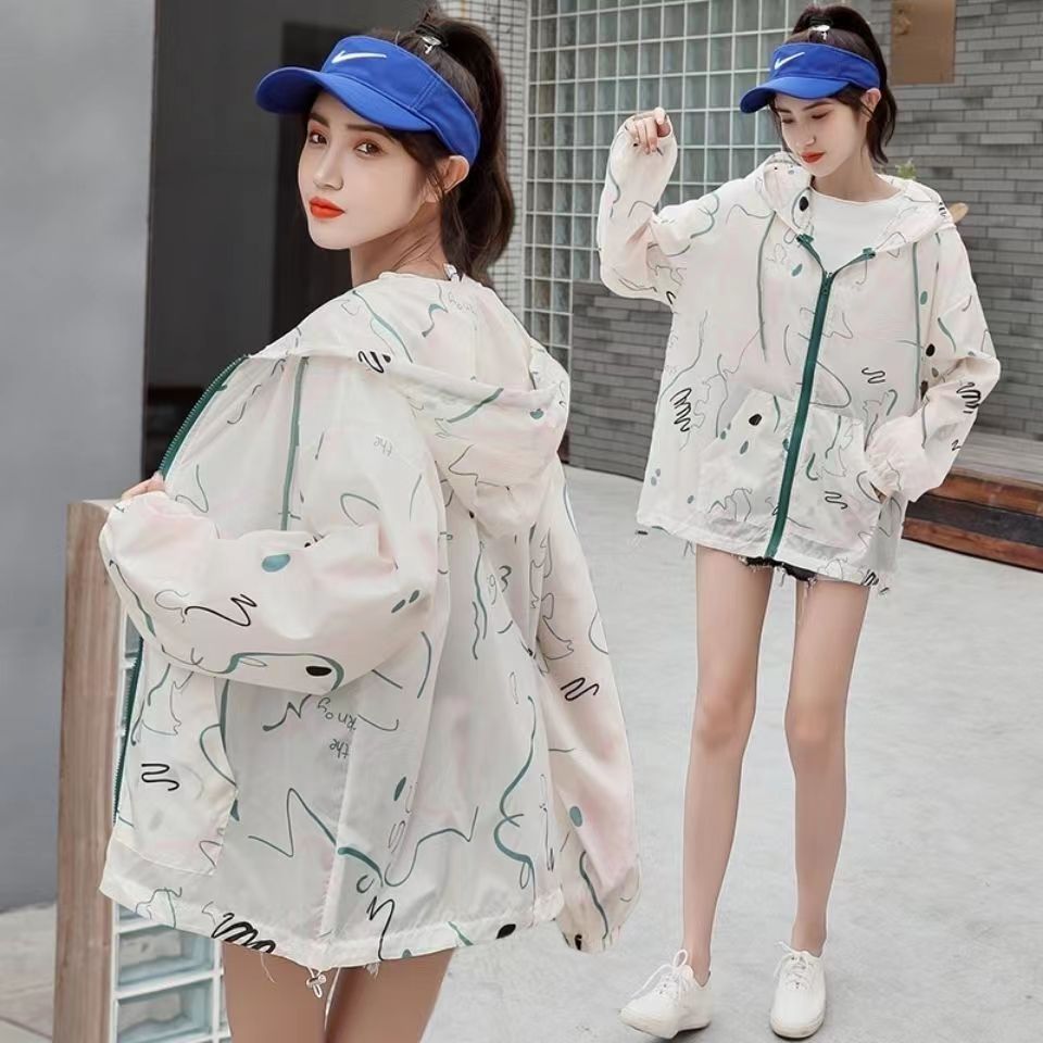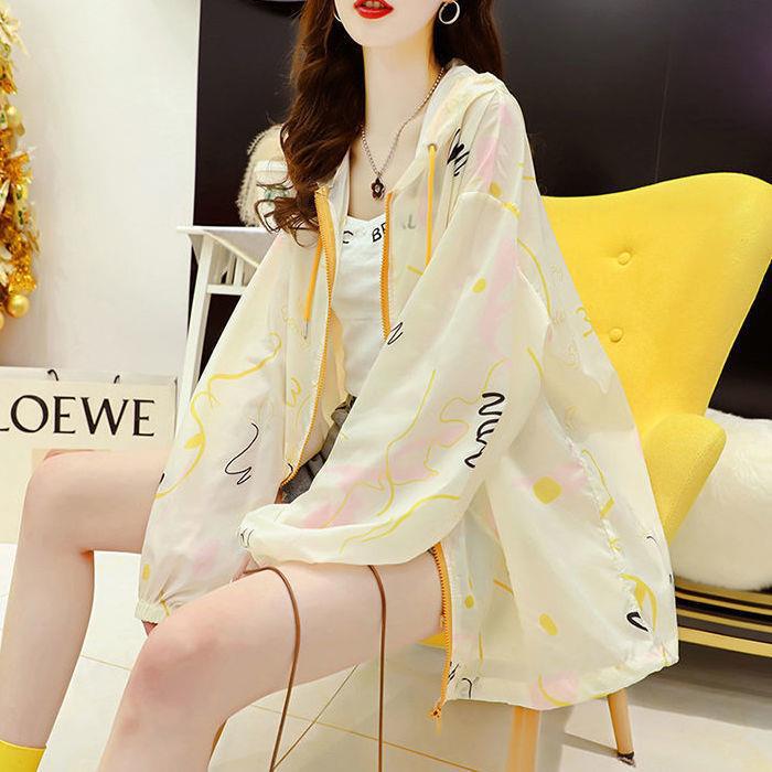印花防晒衣女夏季新款韩版百搭洋气防紫外线透气连帽防晒服薄外套