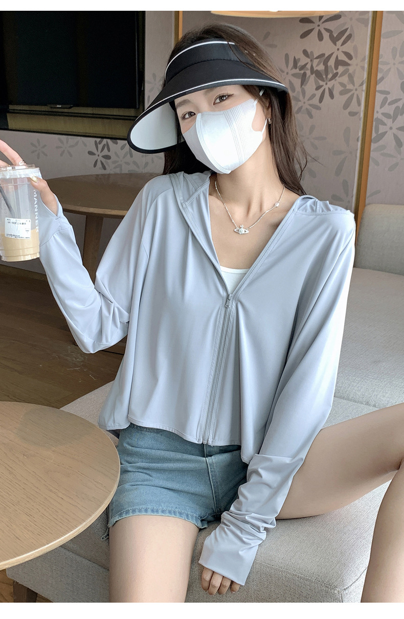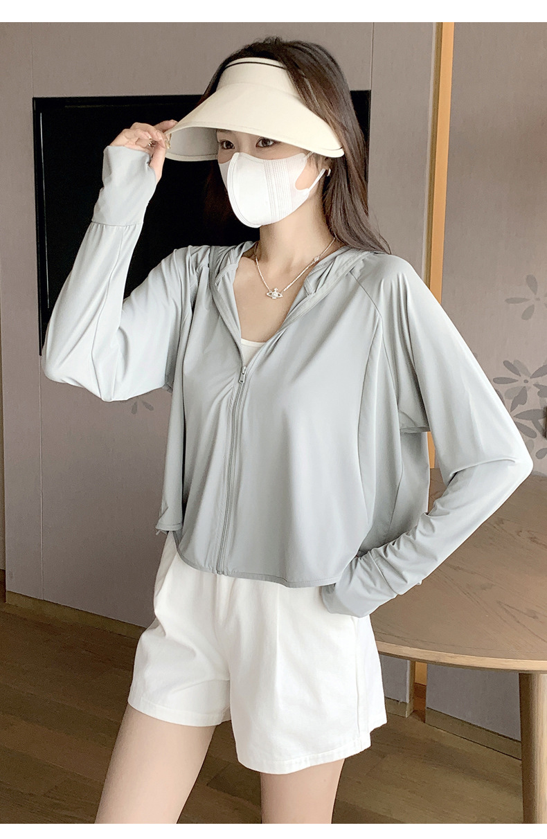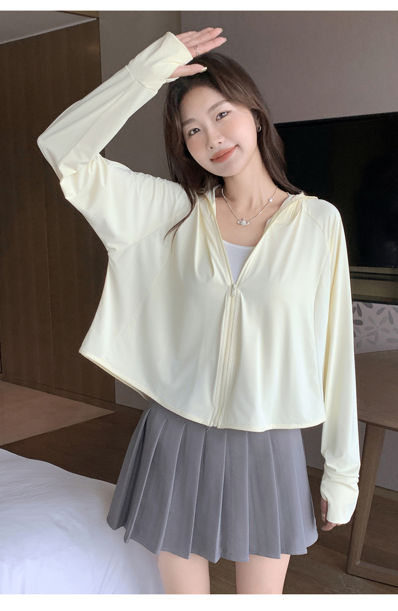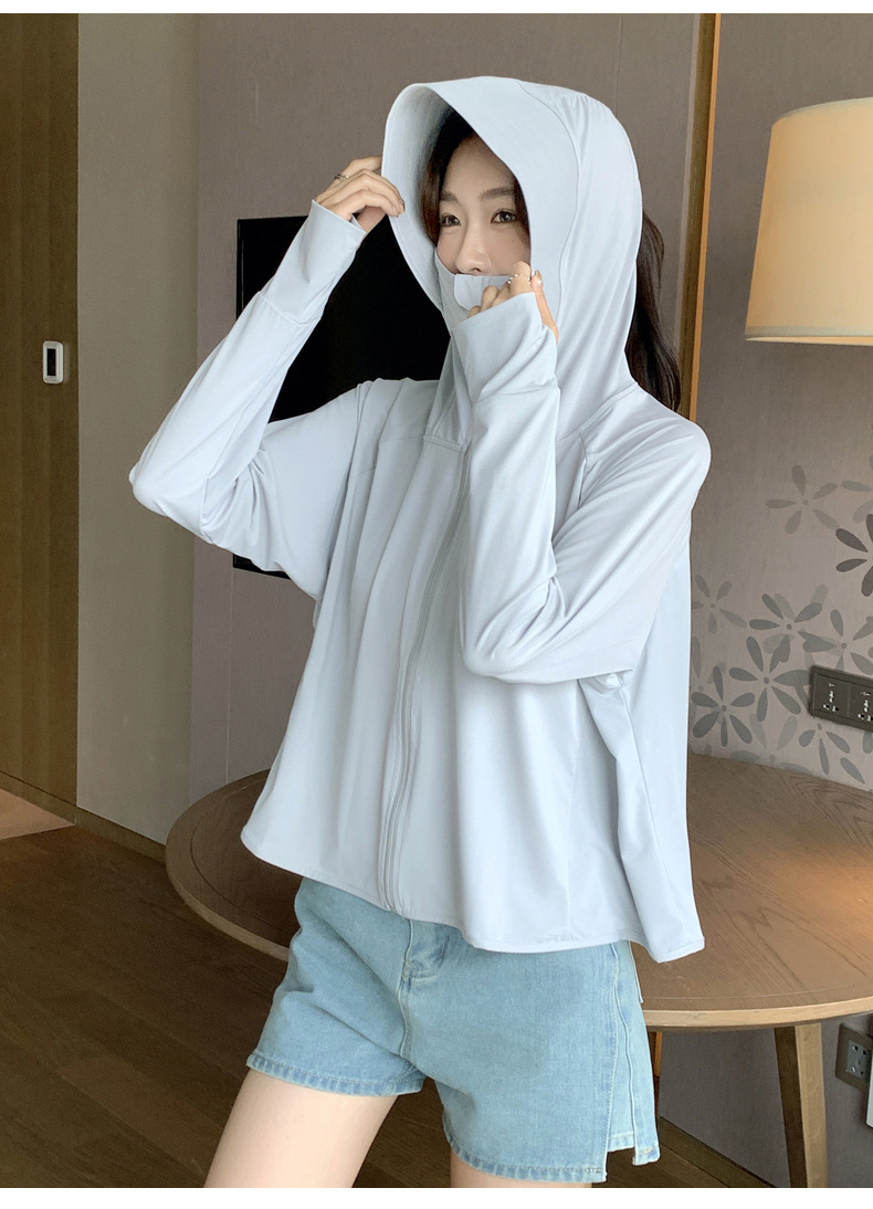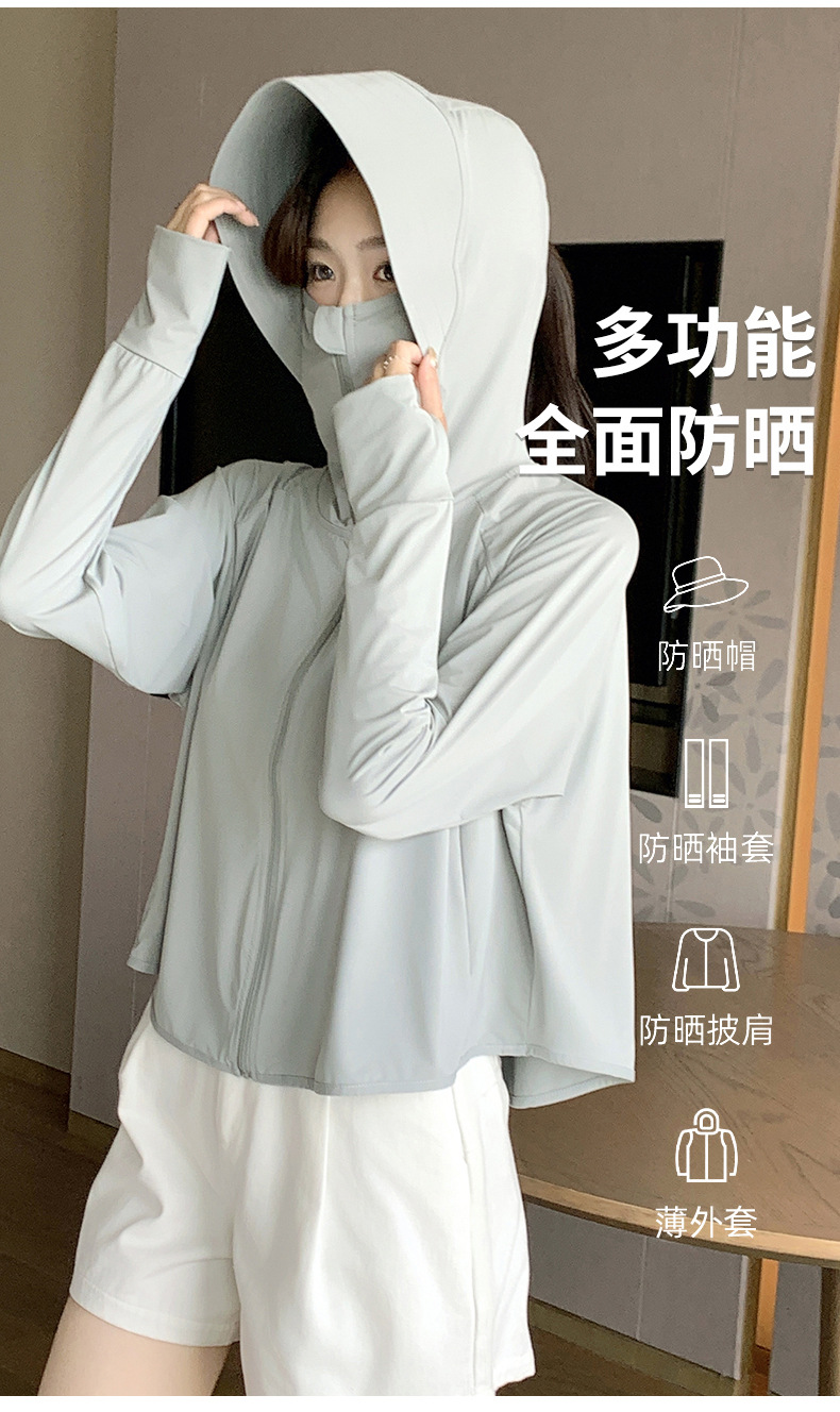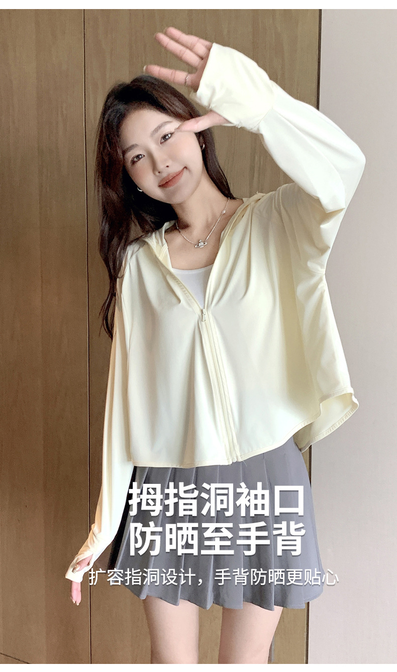 242冰丝防晒衣女新款夏季宽松连帽运动辣妹纯欲开衫外搭长袖上衣