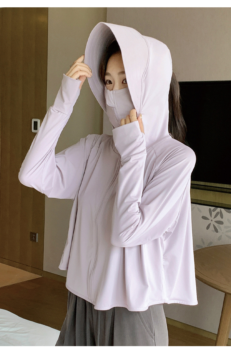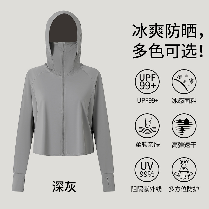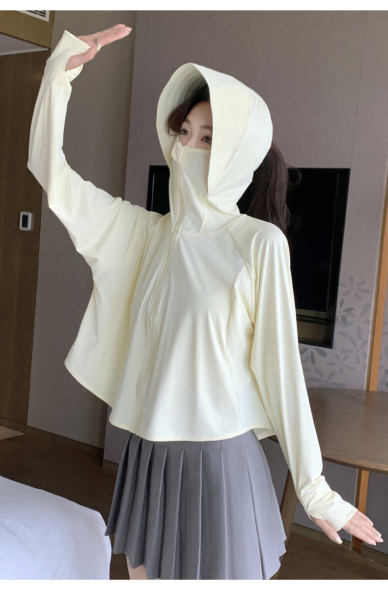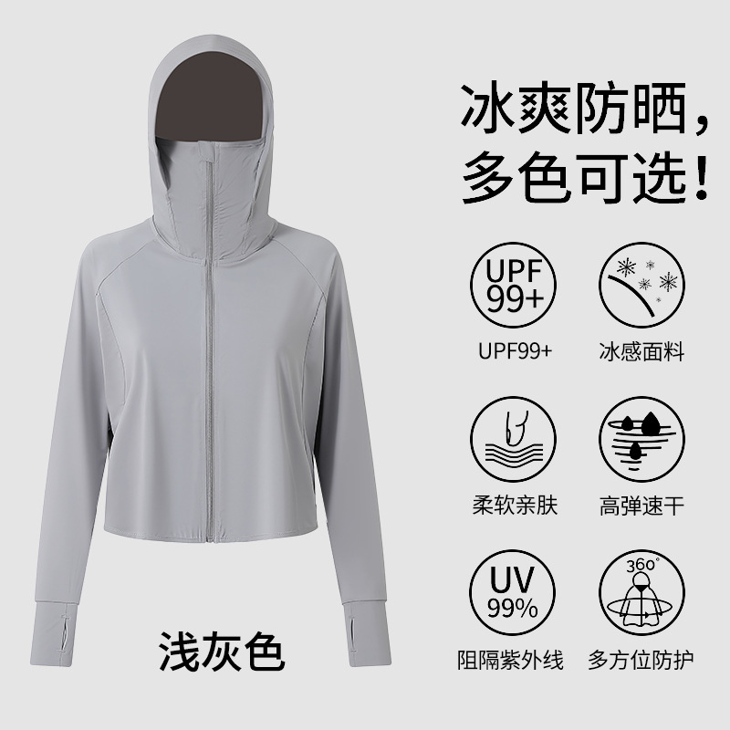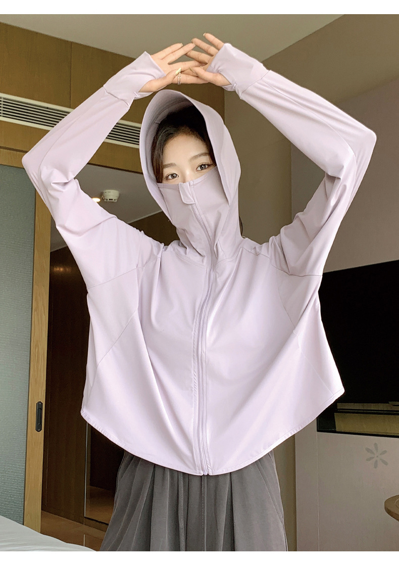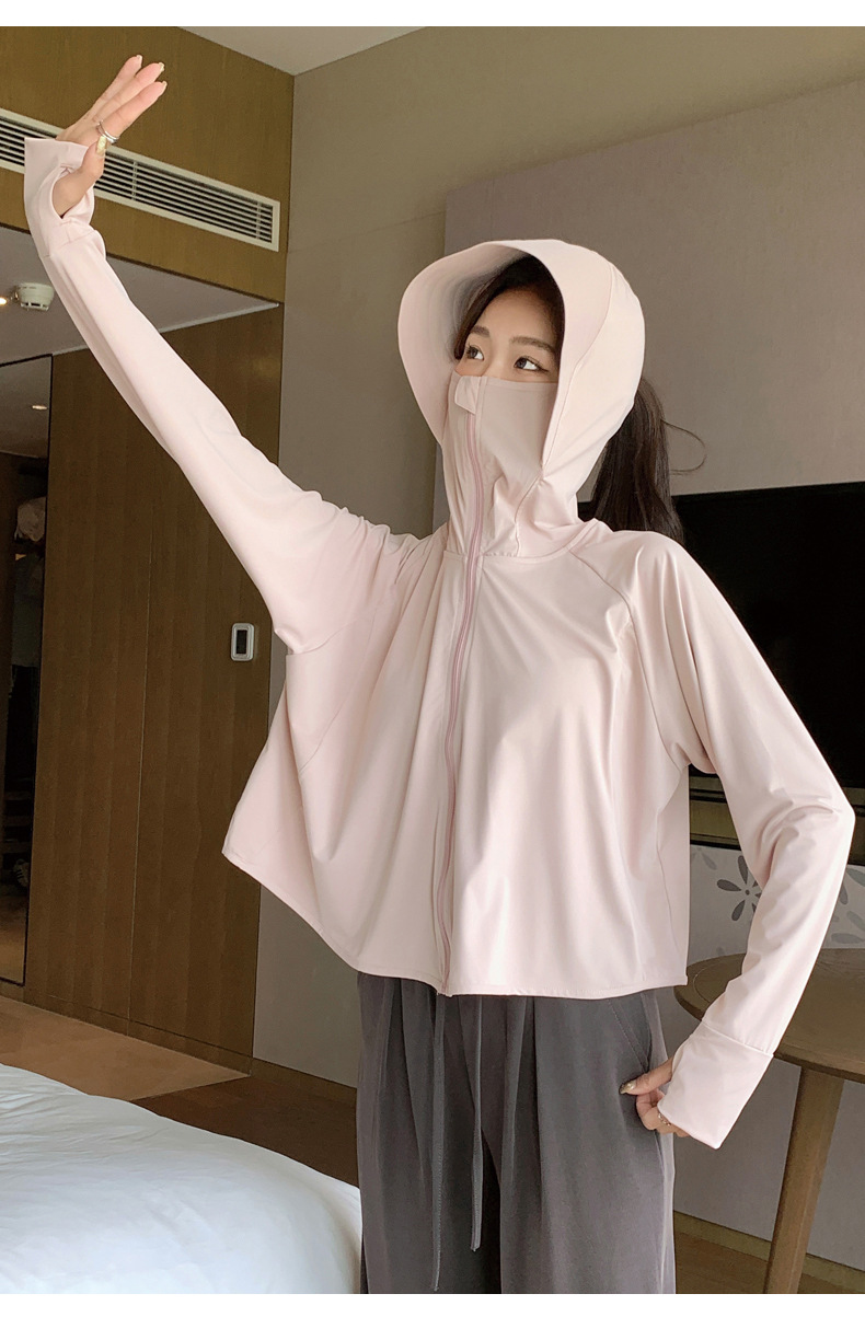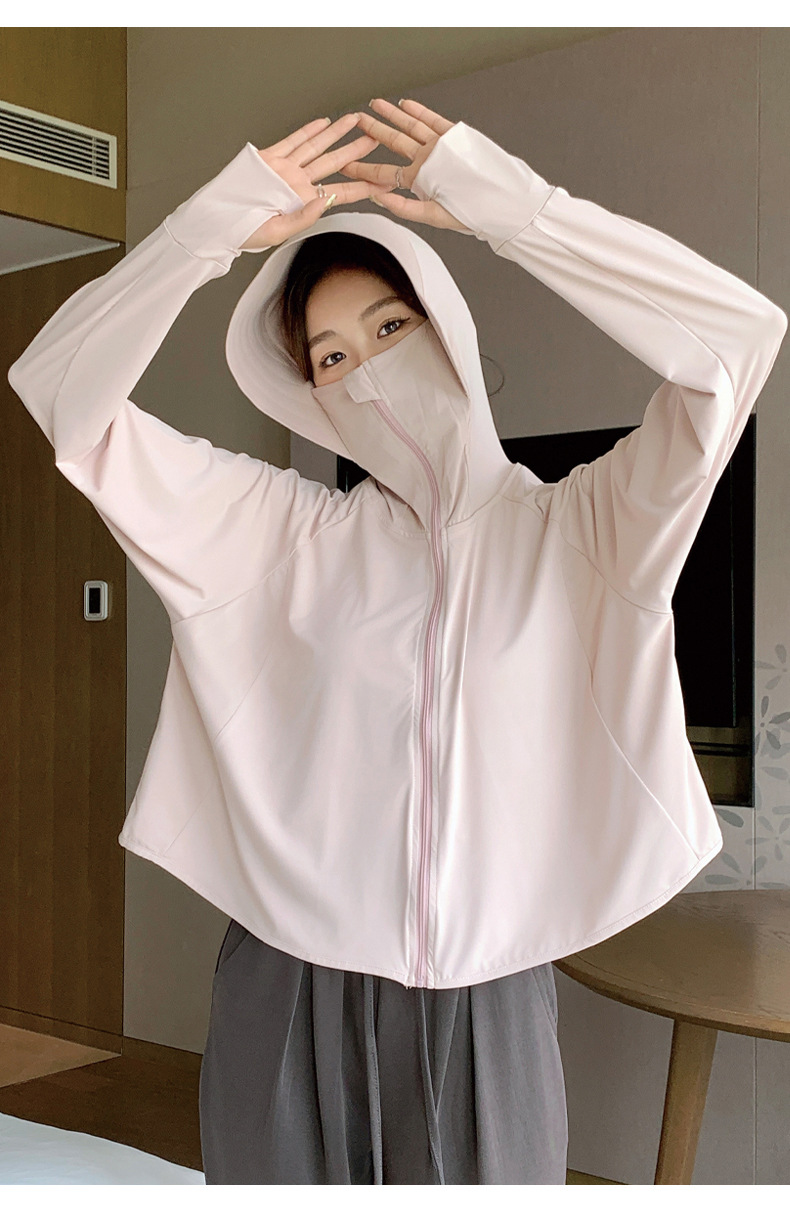 242冰丝防晒衣女新款夏季宽松连帽运动辣妹纯欲开衫外搭长袖上衣