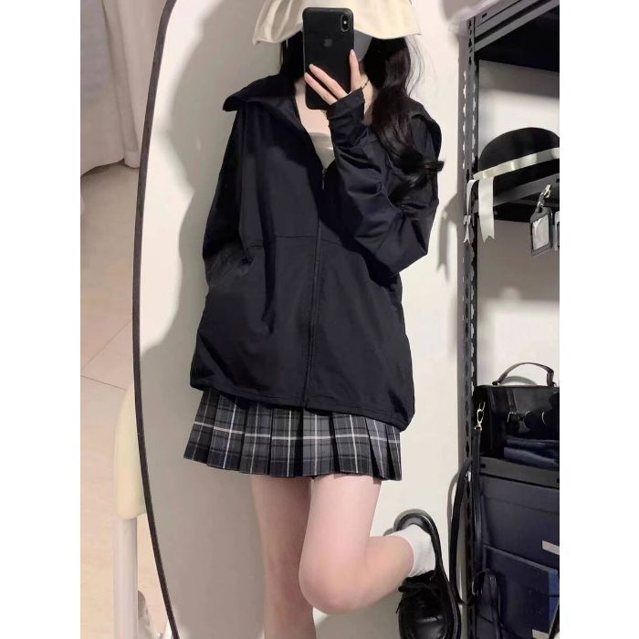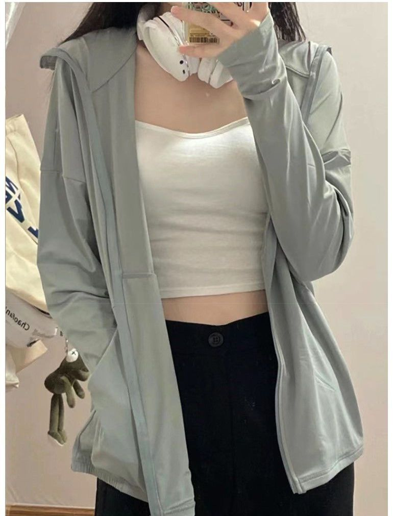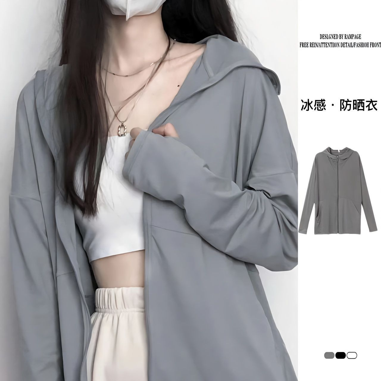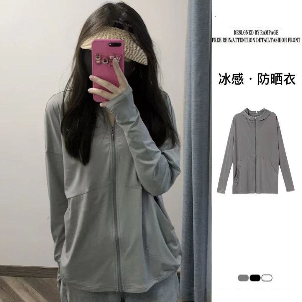 冰丝防晒衣女夏季薄款长袖宽松透气时尚户外连帽防晒服开衫外套潮