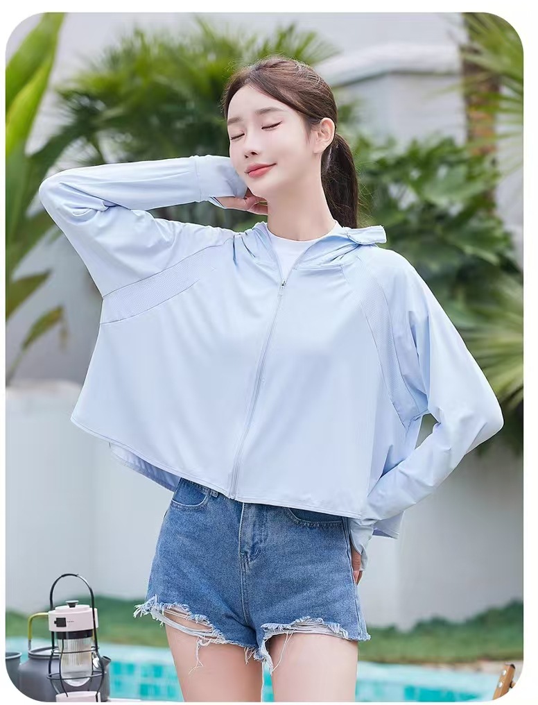 【闪电仓春夏爆款】披肩防晒衣女防紫外线黑胶帽檐连帽防晒服