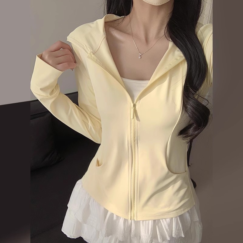 黄色冰丝防晒衣女款夏季2025新款修身正肩上衣瑜伽服外套防紫外线