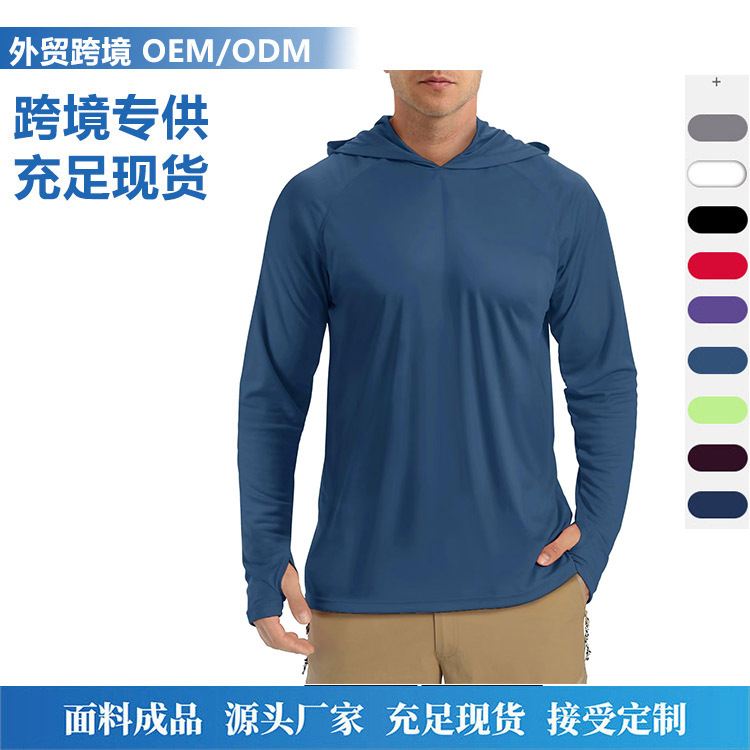 户外防晒外套连帽套头卫衣防紫外线套指长袖休闲防晒衣运动衣男士