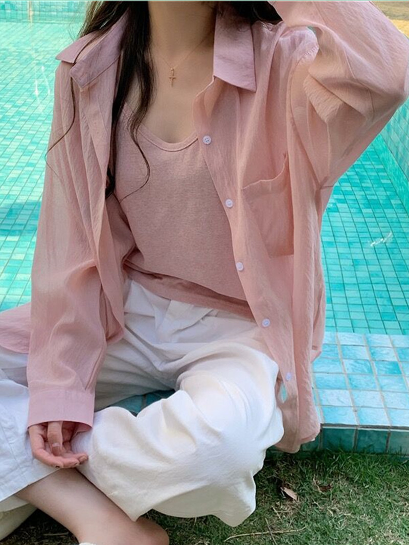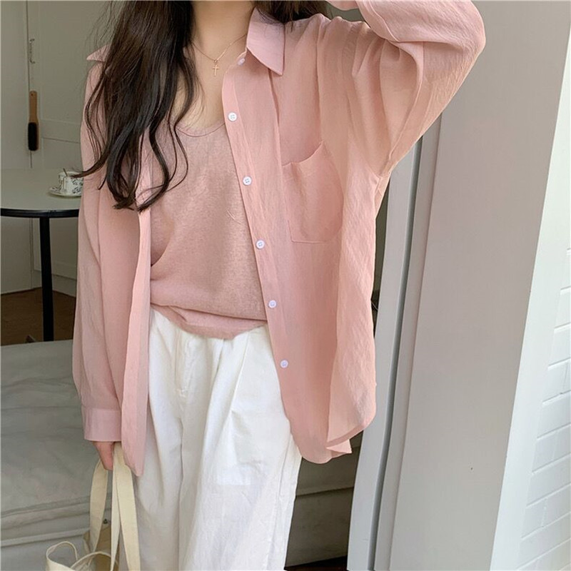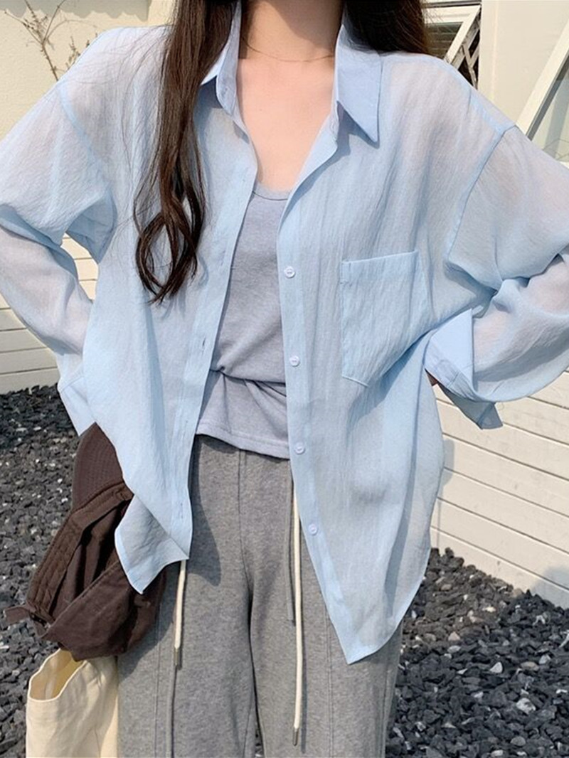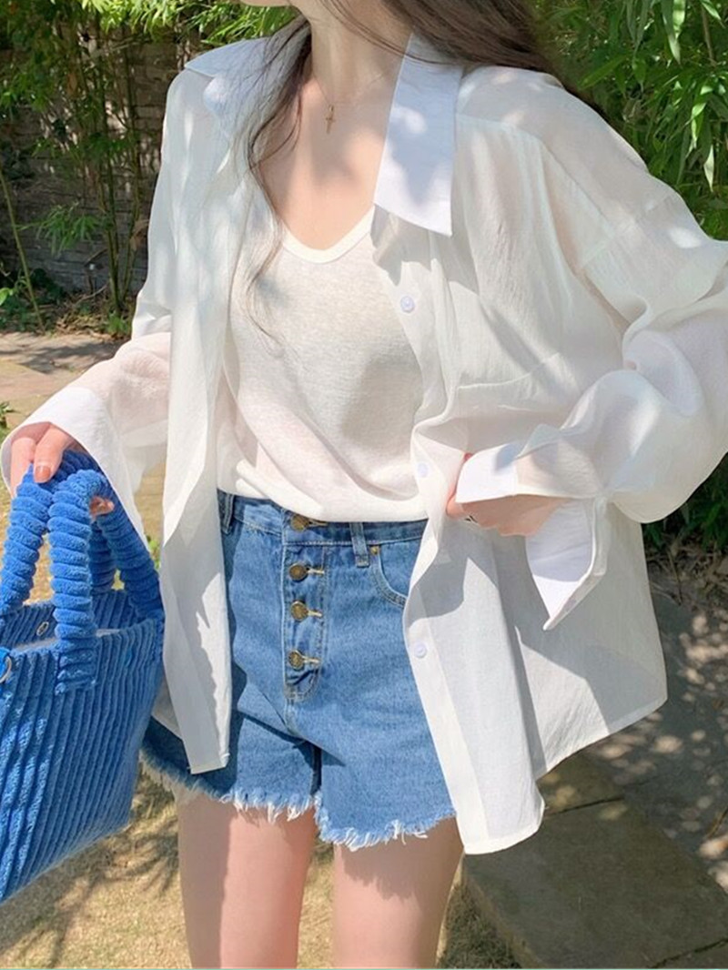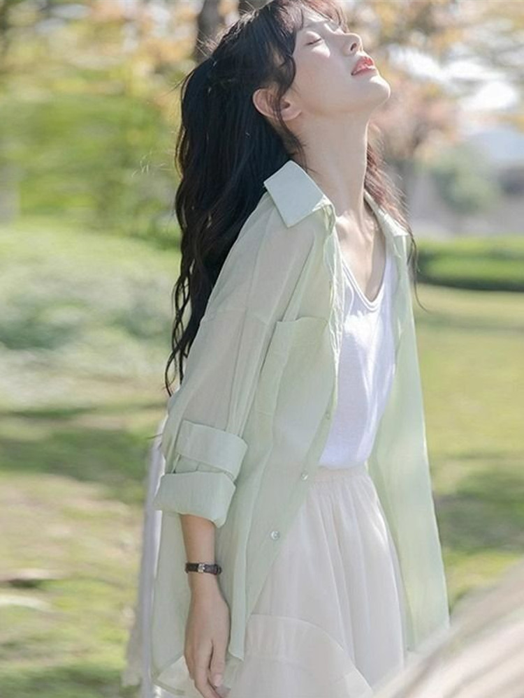 法式冰丝防晒衬衫女夏天丝薄款衬衣高级感超仙长袖防晒衣上衣外套