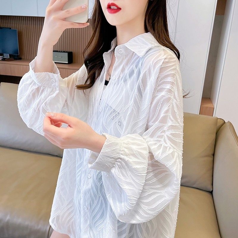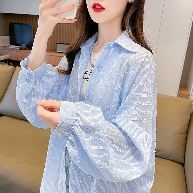 冰丝透气薄款雪纺衬衫女夏季新款2025宽松大码时尚洋气防晒衣外套