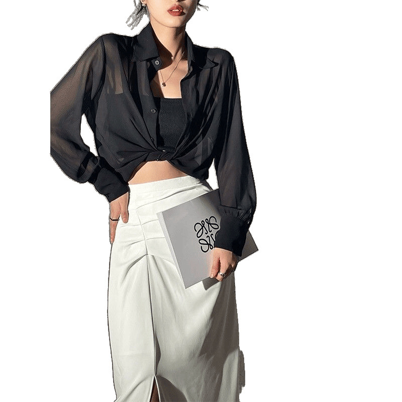 雪纺衬衫女夏季2025新款薄纱吊带开衫外搭防晒衣薄款上衣外套跨境