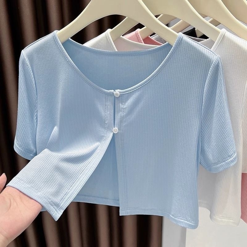 防晒衣披肩外搭大码胖mm短袖开衫夏季薄款罩衫外套上衣坎肩女代发