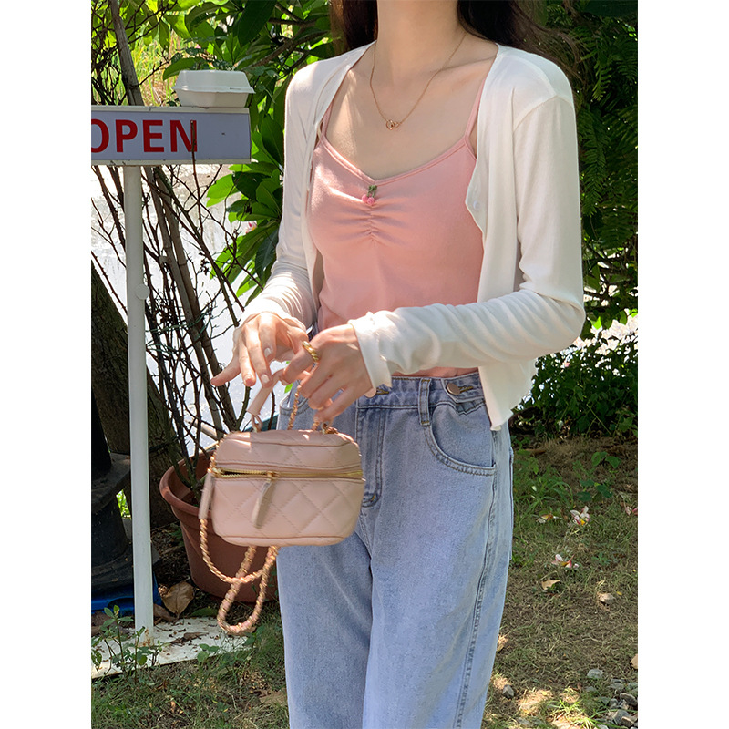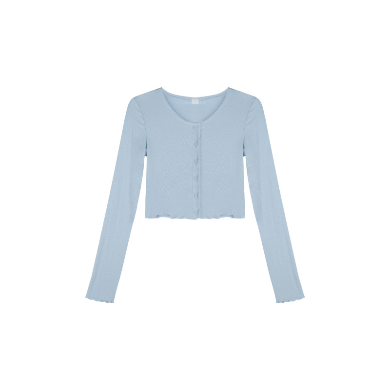 蓝色气质罩衫薄款防晒衣长袖开衫女装春季修身显瘦小个子外套上衣