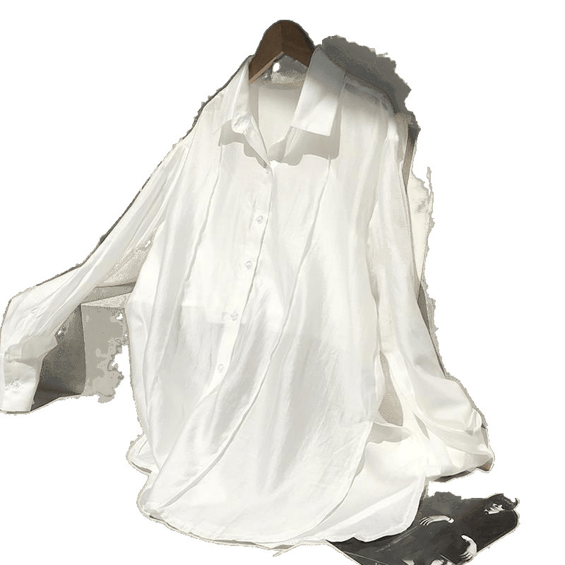 白色冰丝衬衫女防晒衣罩衫长袖薄款外搭上衣垂感衬衣外套夏季轻薄
