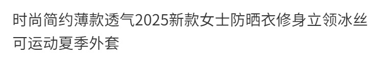 时尚简约薄款透气2025新款女士防晒衣修身立领冰丝可运动夏季外套