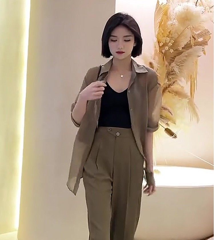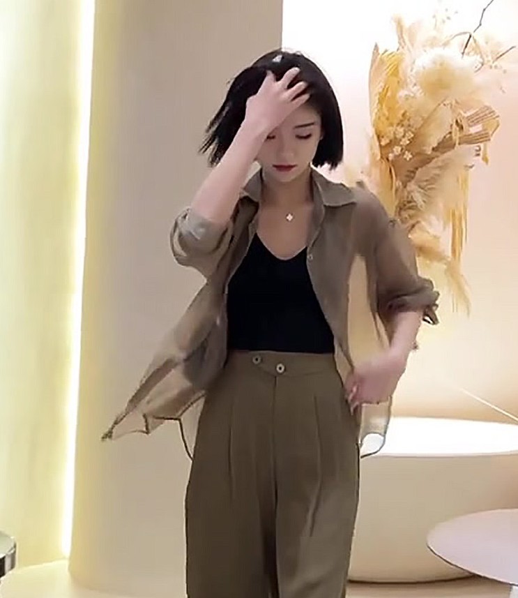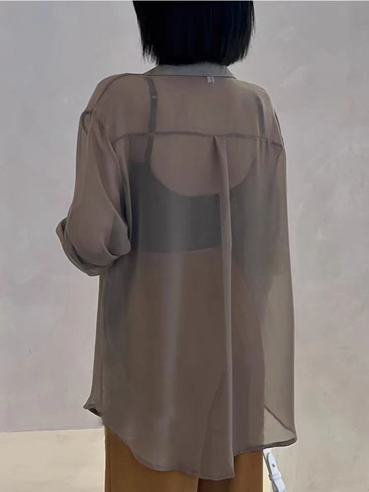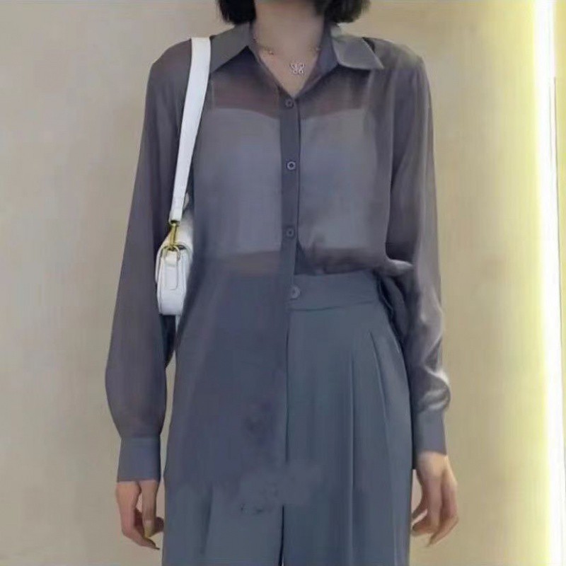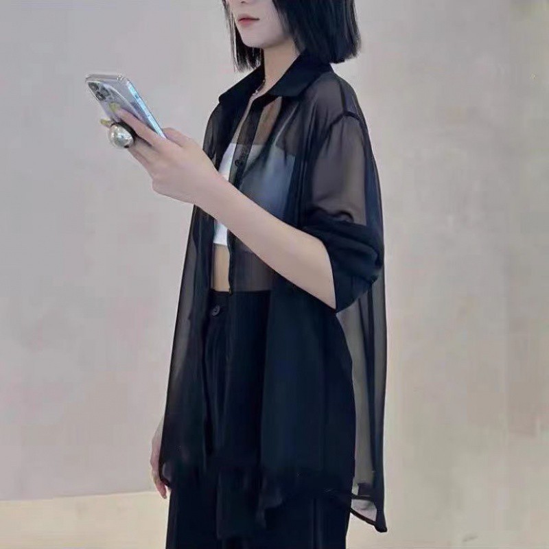 2024夏季新款雪纺防晒衫女装薄款衬衣百搭上衣服宽松长袖透视衬衫
