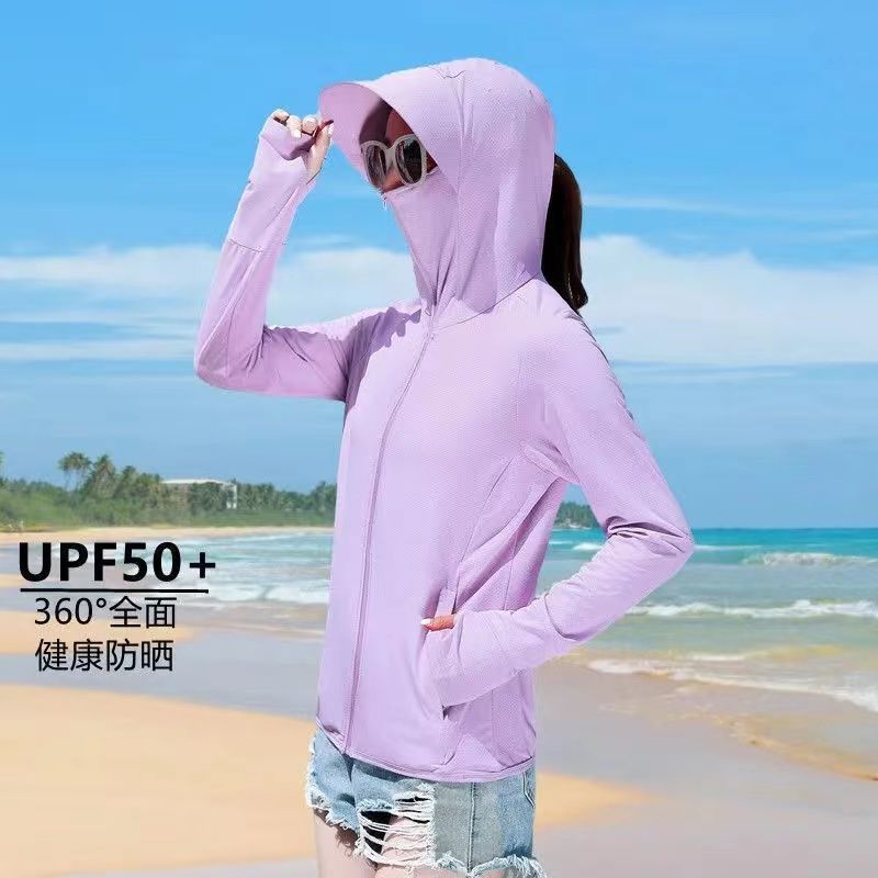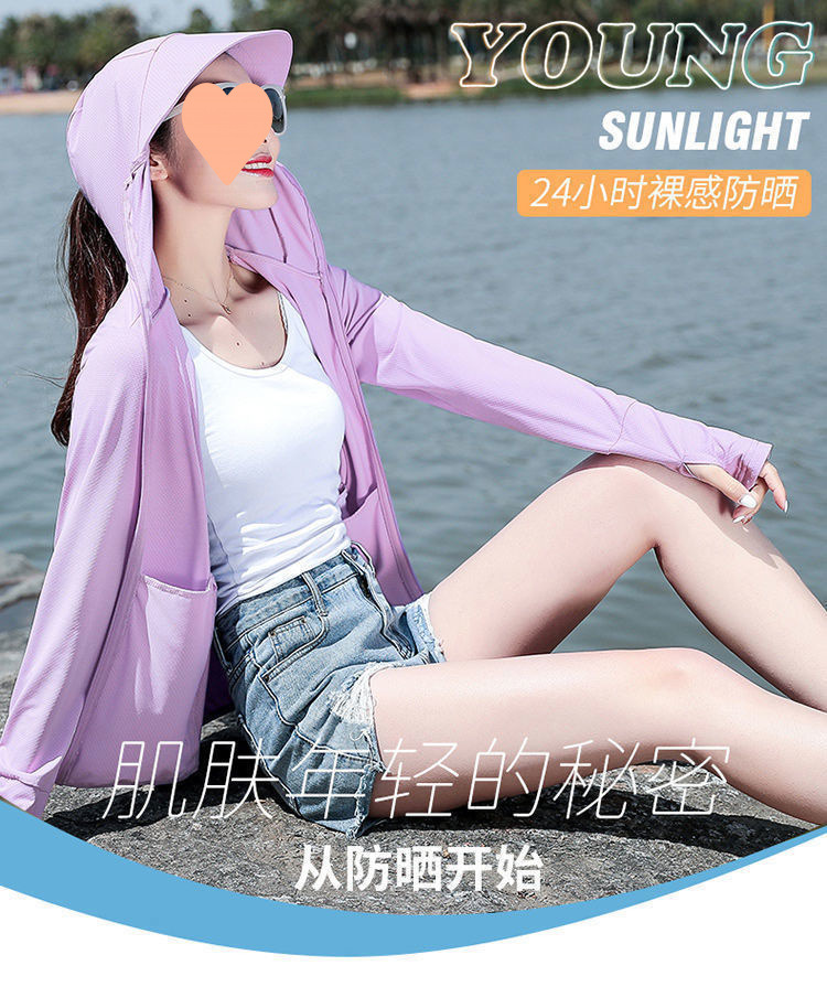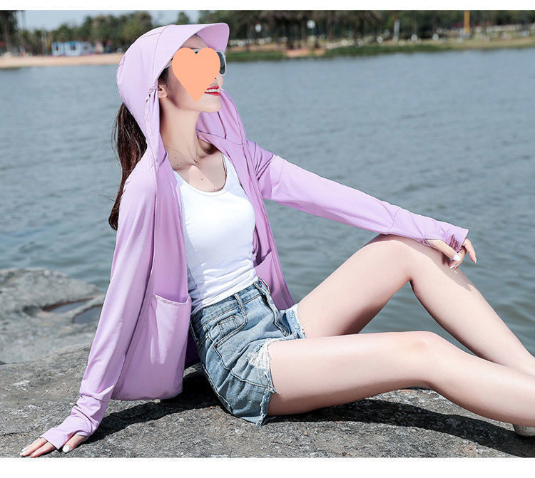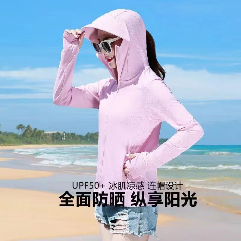 冰丝防晒衣女外穿2025新款夏季防紫外线连帽透气薄款长袖防晒服
