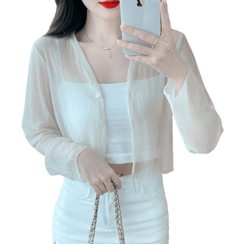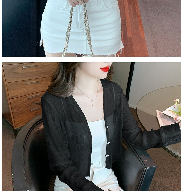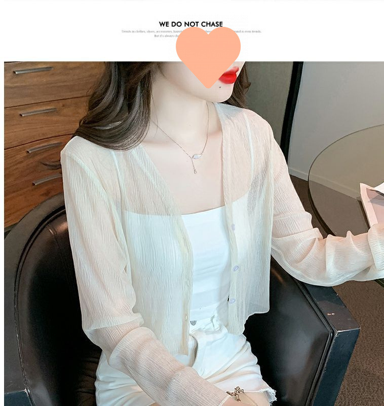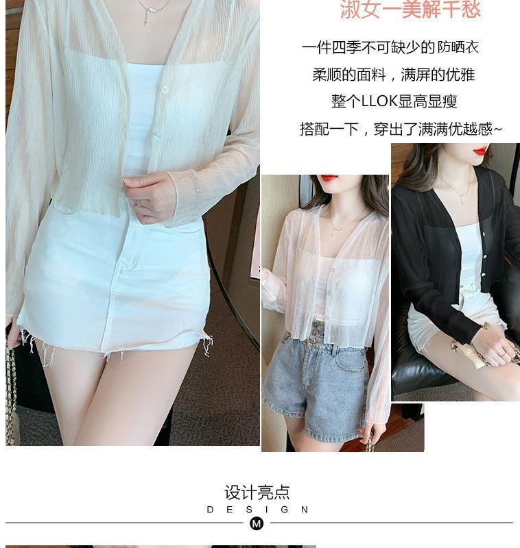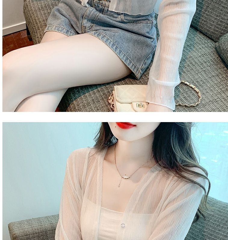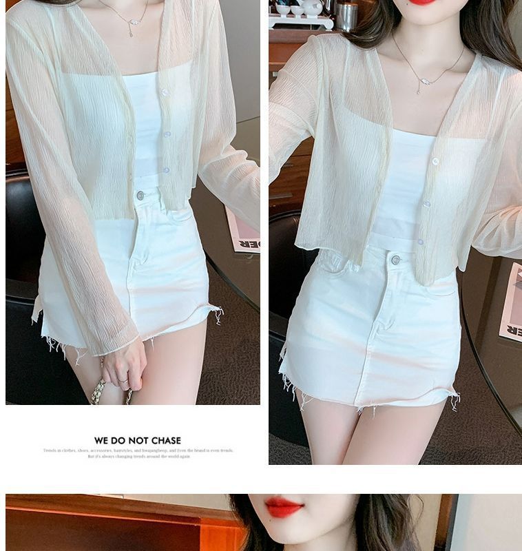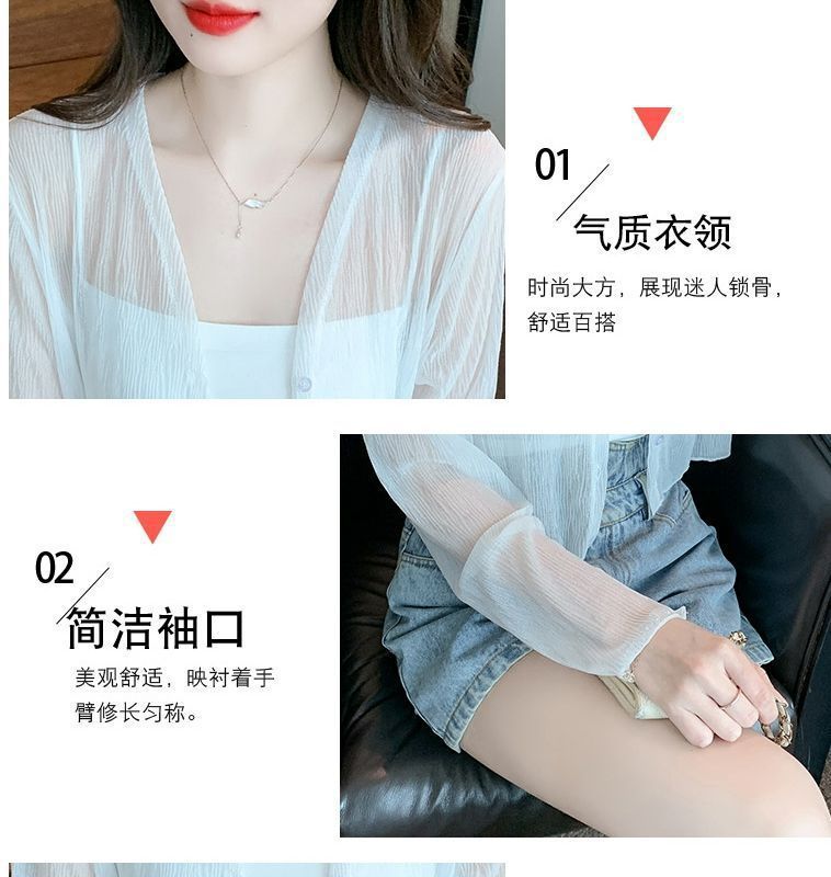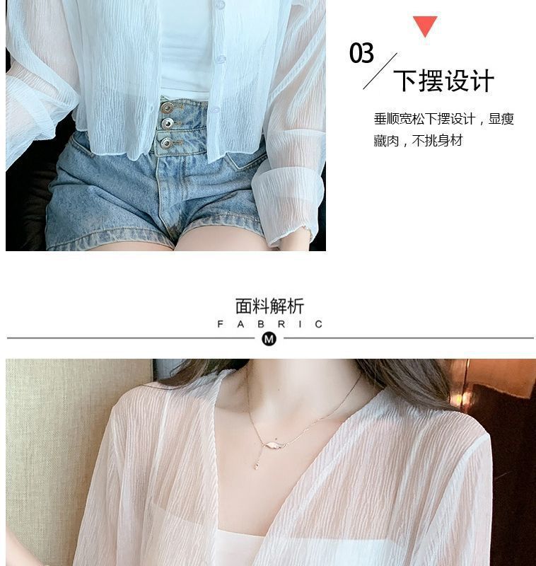 白色冰丝防晒衣女夏季薄款雪纺开衫配吊带裙外搭罩衫小披肩短外套