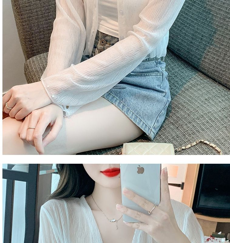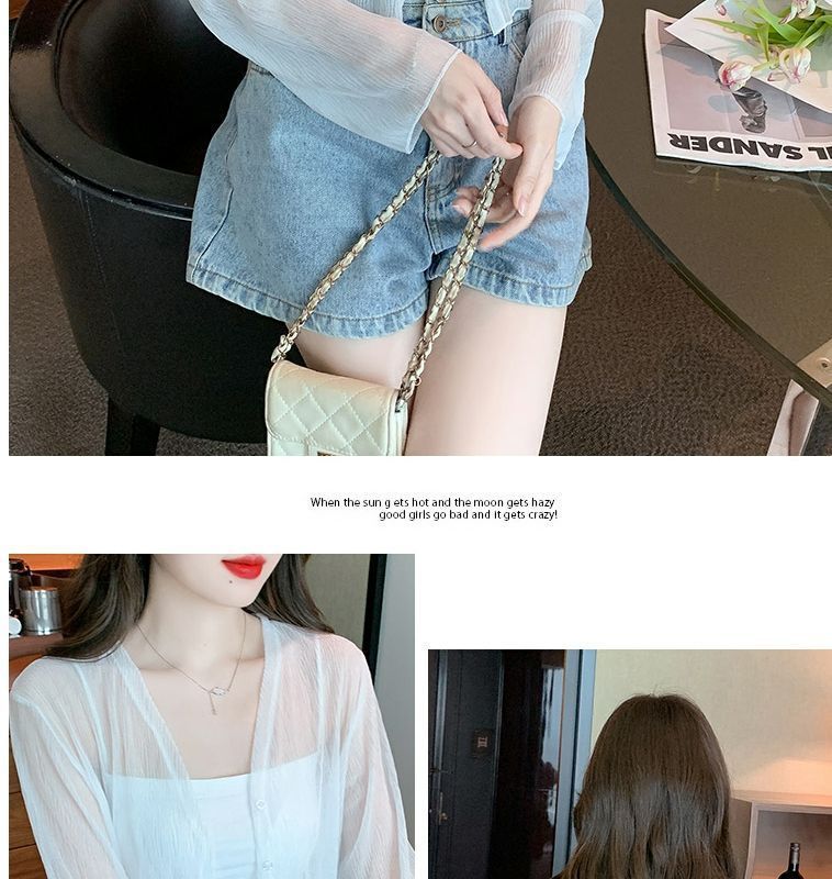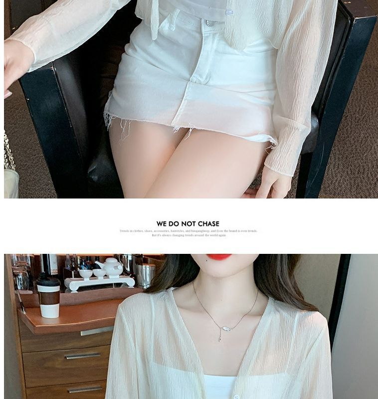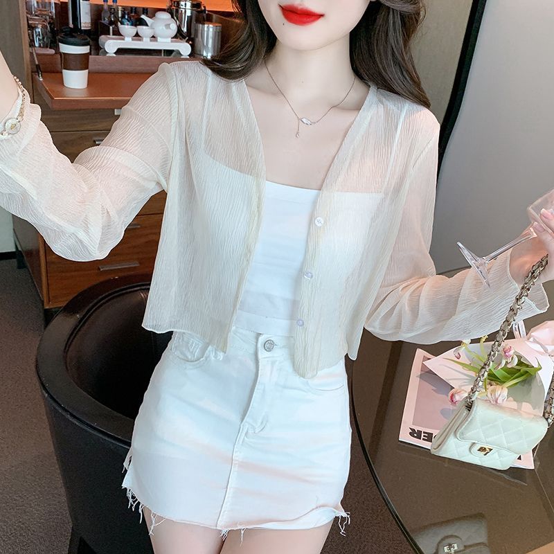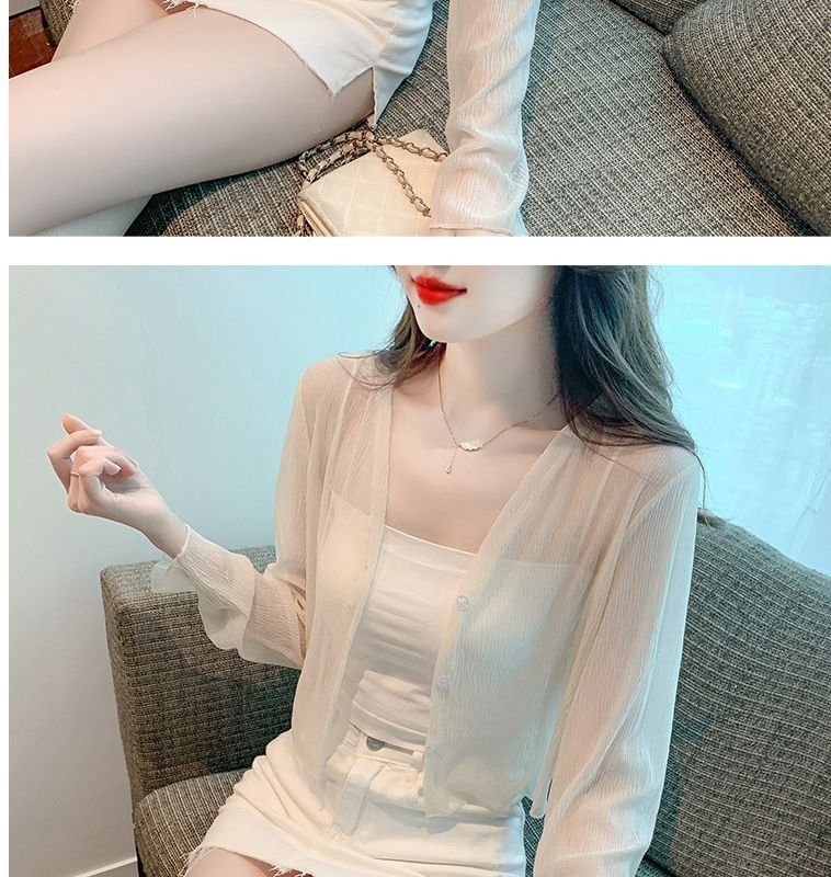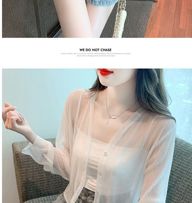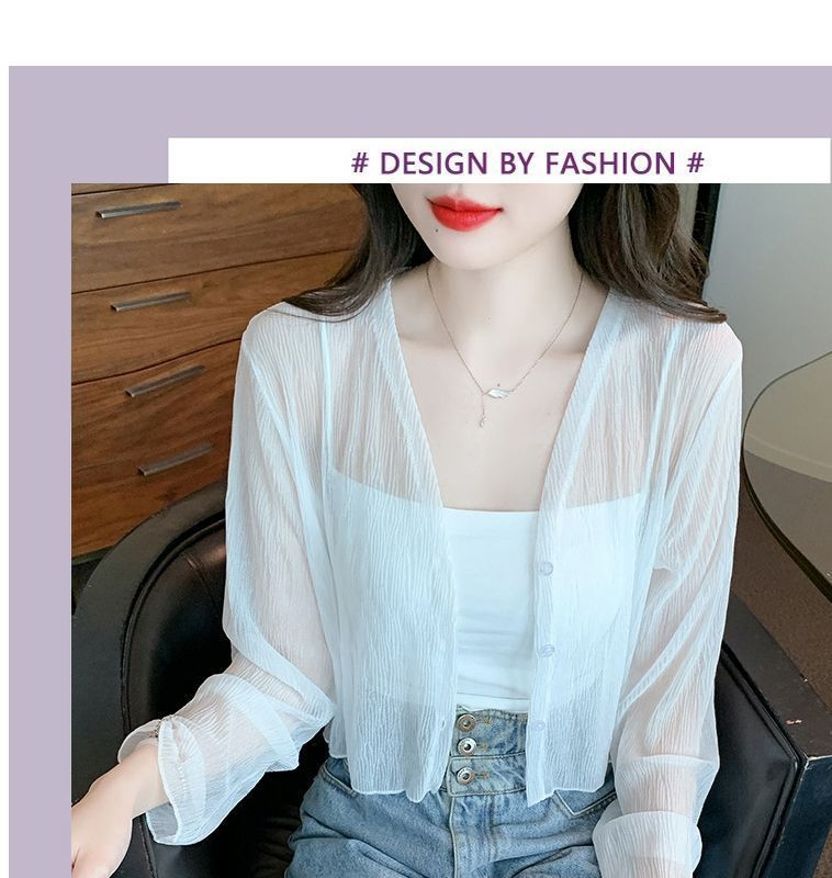 白色冰丝防晒衣女夏季薄款雪纺开衫配吊带裙外搭罩衫小披肩短外套
