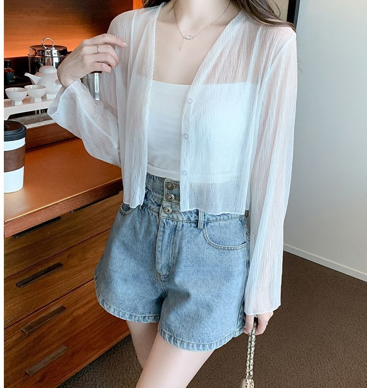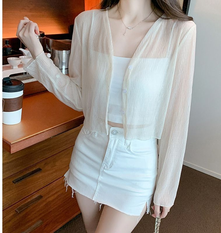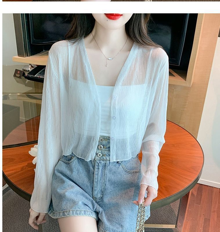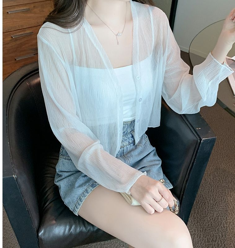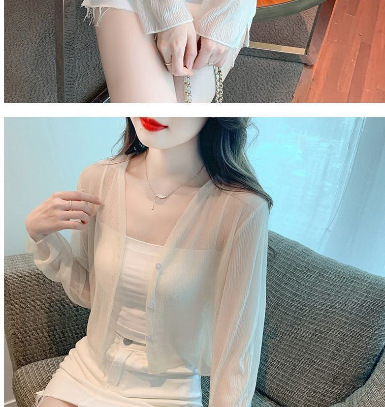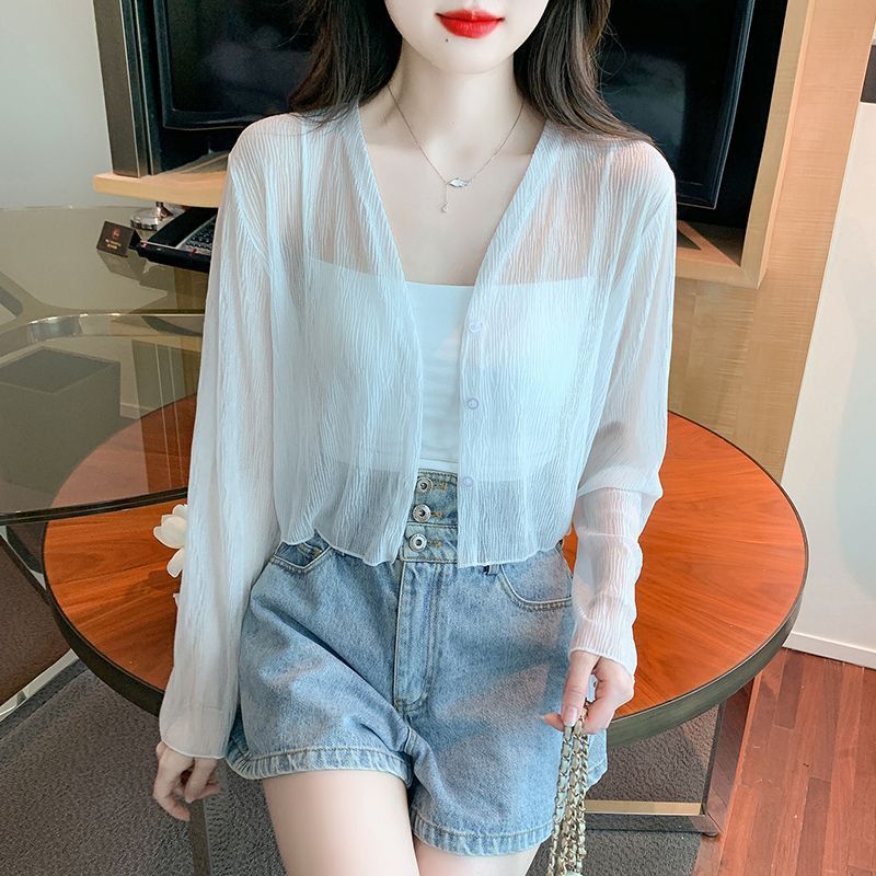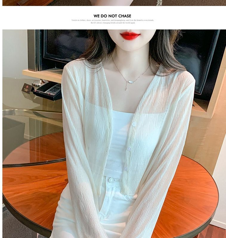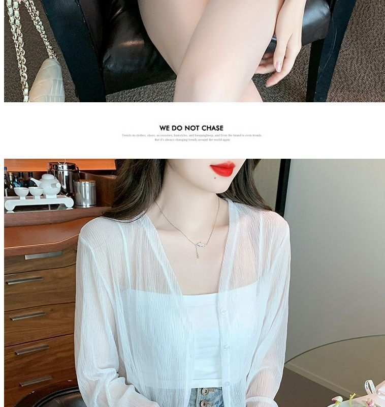 白色冰丝防晒衣女夏季薄款雪纺开衫配吊带裙外搭罩衫小披肩短外套