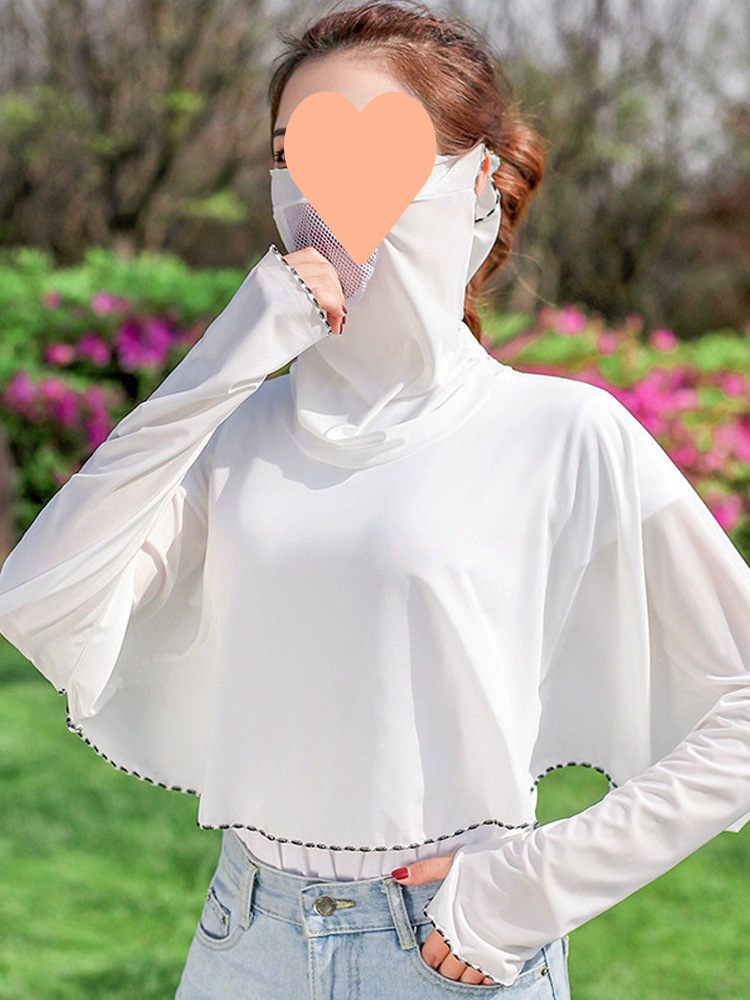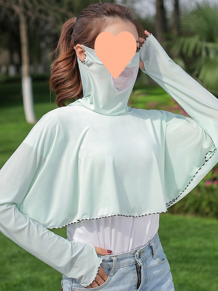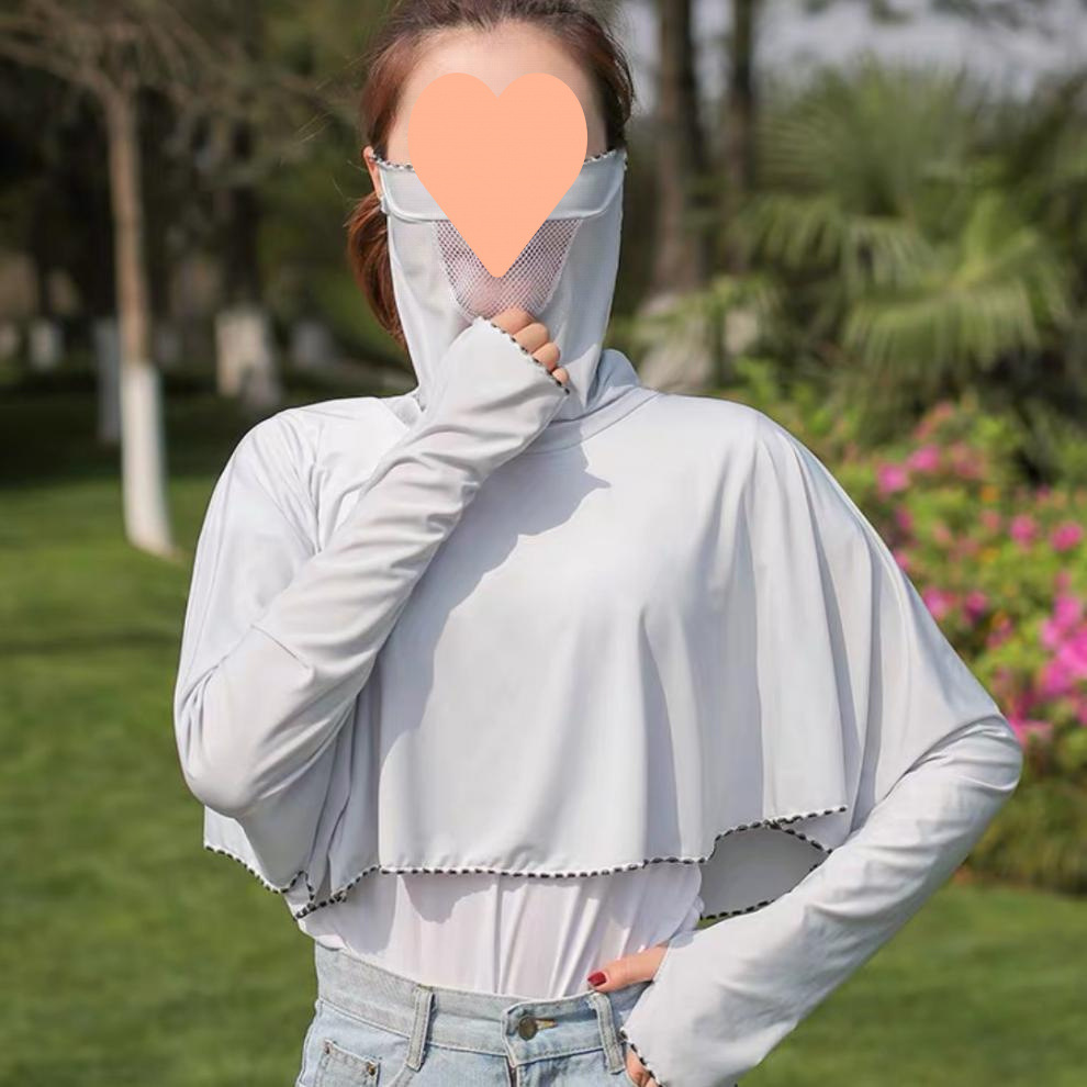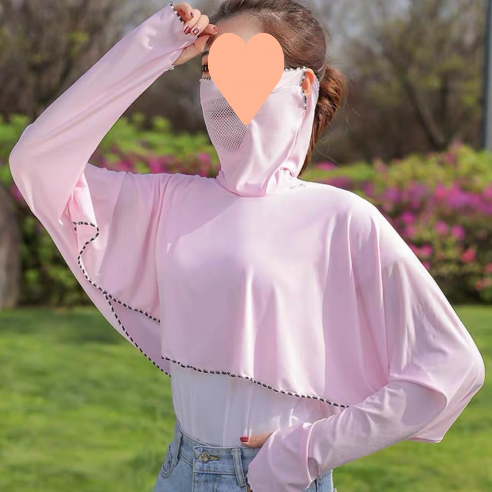 冰丝防晒衣女夏季薄款骑车挂耳防晒服防紫外线透气网口短款披肩