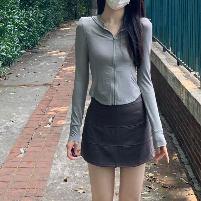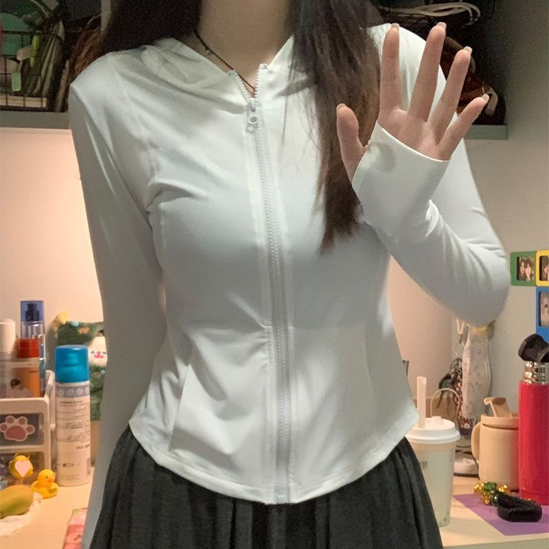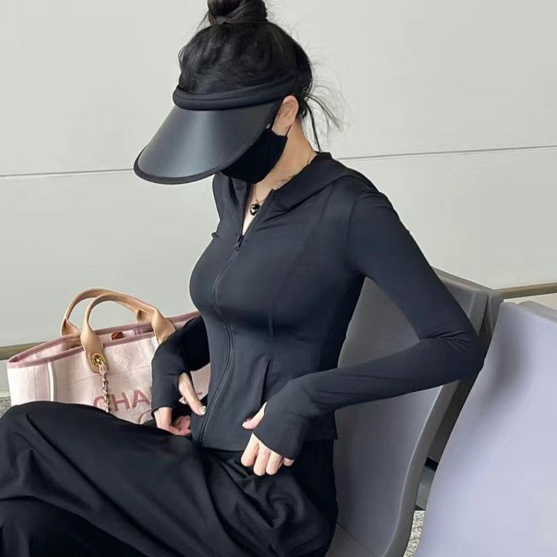 冰丝防晒衣女夏季修身显腿长瑜伽服外套防紫外线速干运动紧身上衣