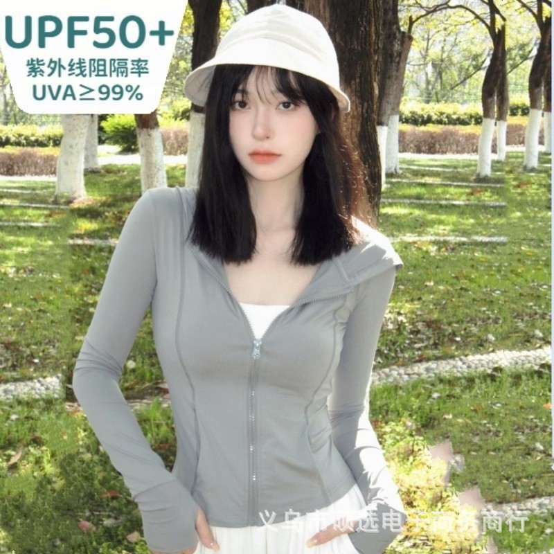 小野防晒衣女夏季连帽修身冰丝薄款开衫外套女防紫外线瑜伽防晒服