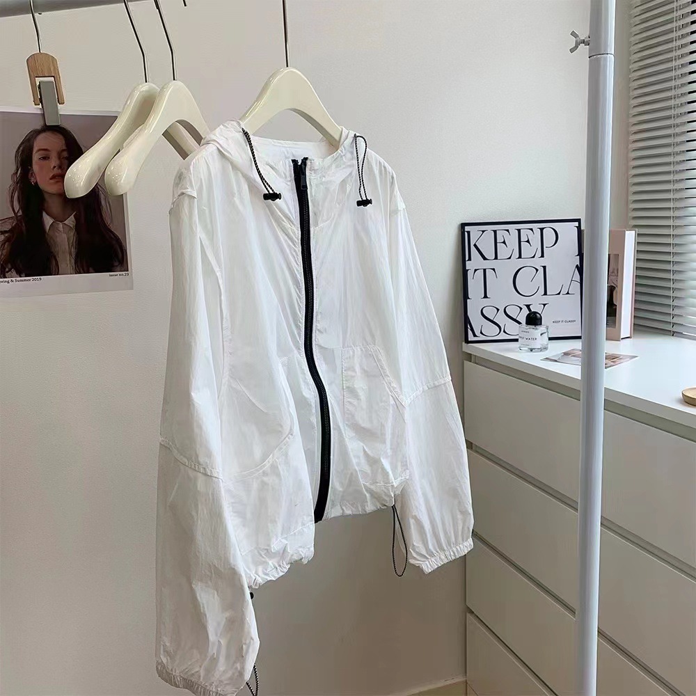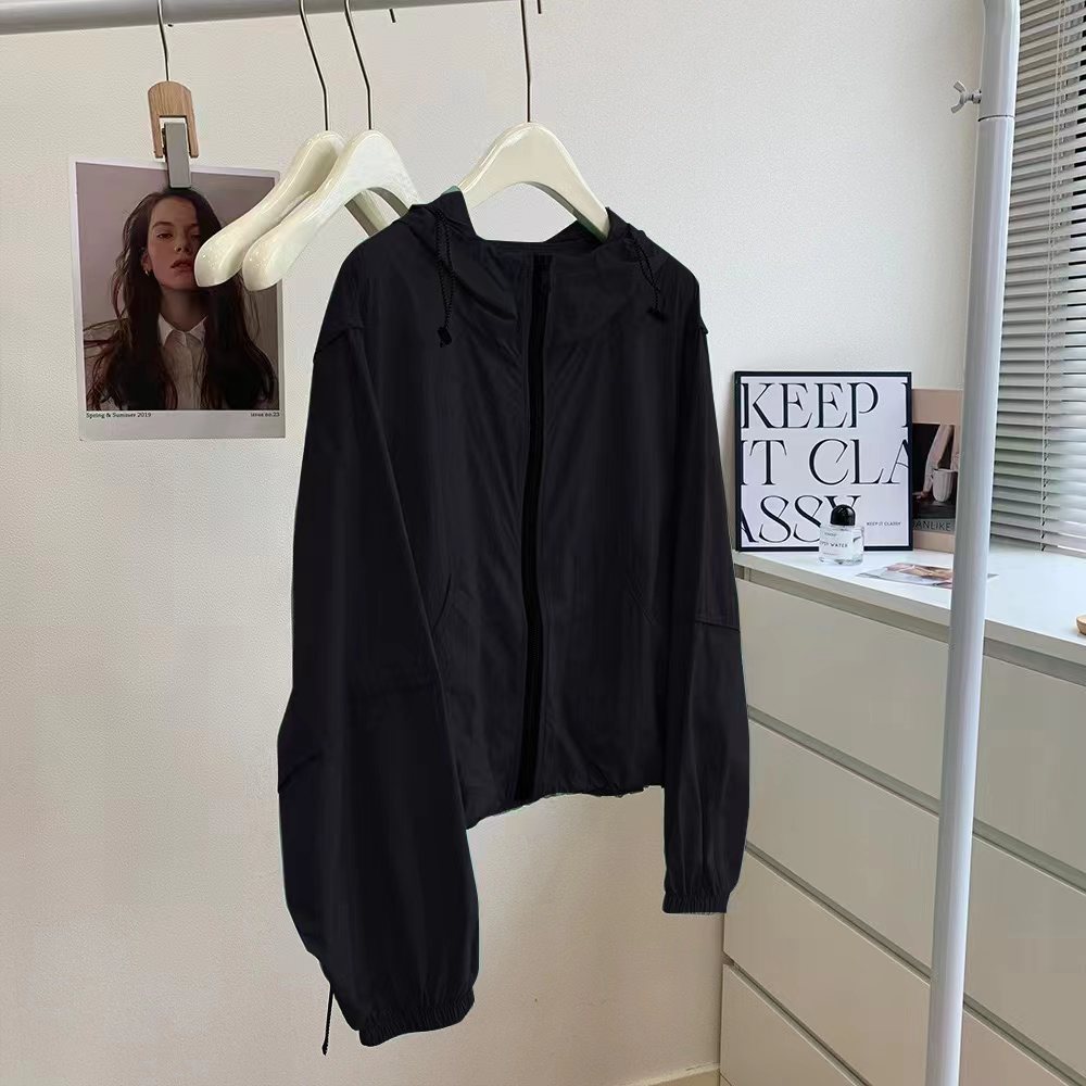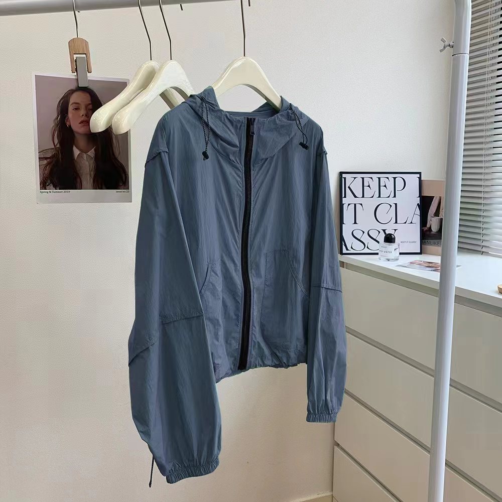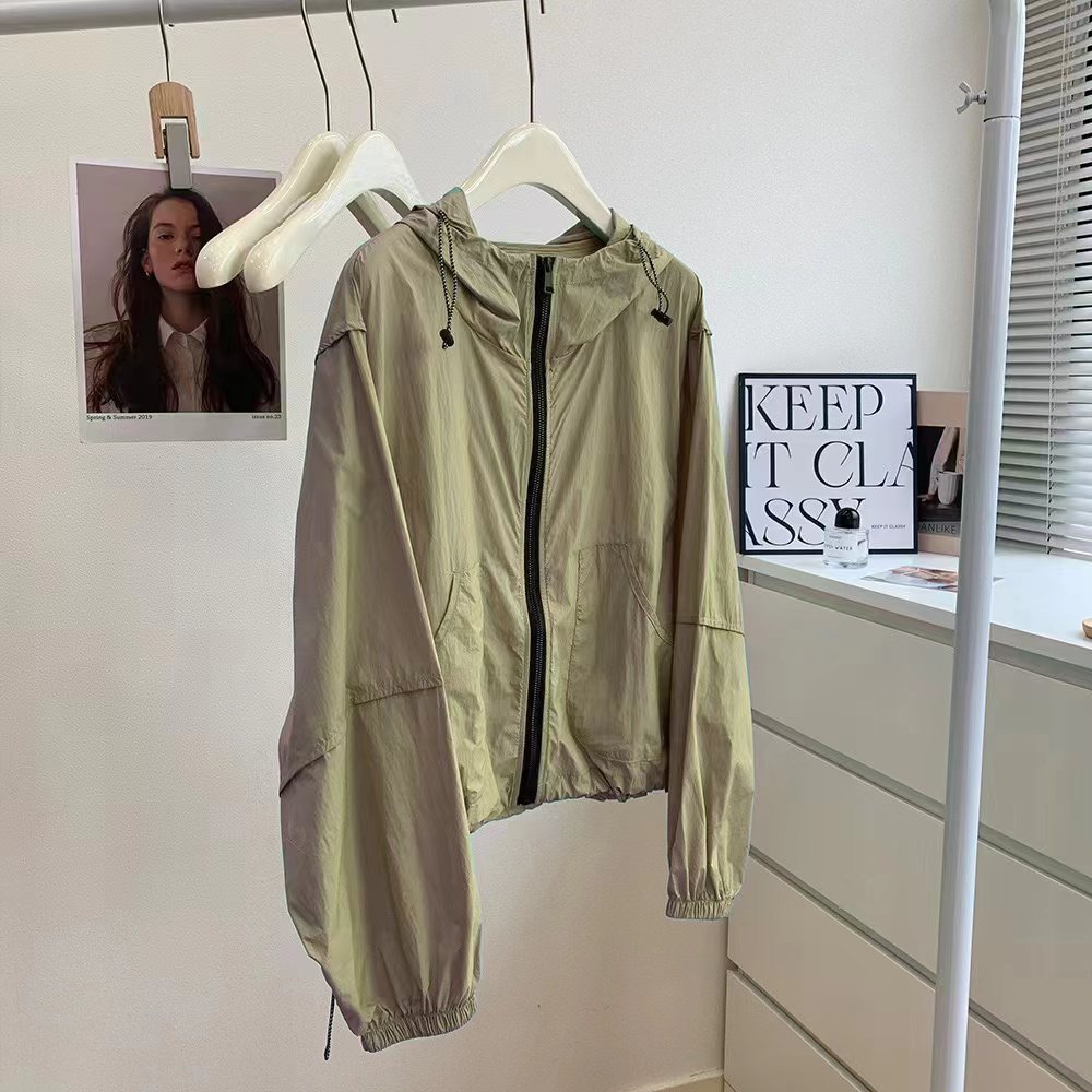 2025凌下衣度抽绳连帽锦纶速干防晒衣宽松户外女款旅游登山休闲服