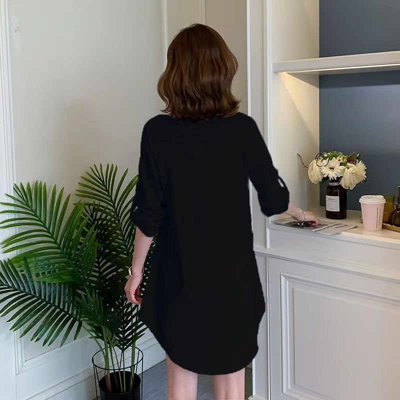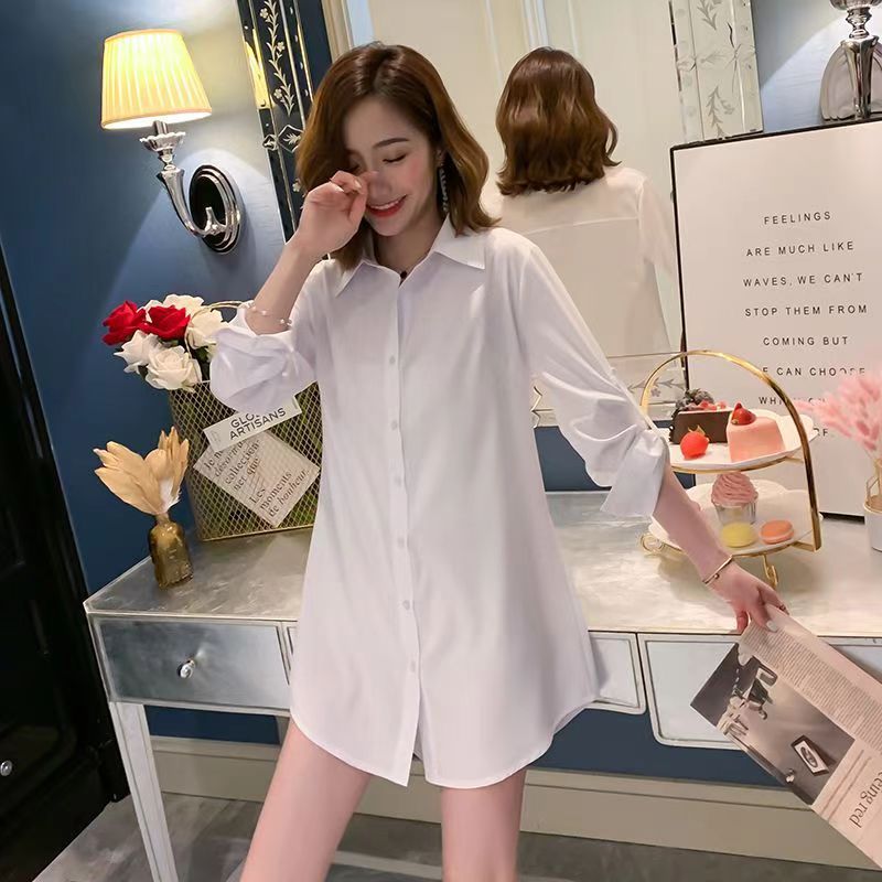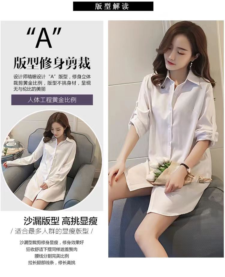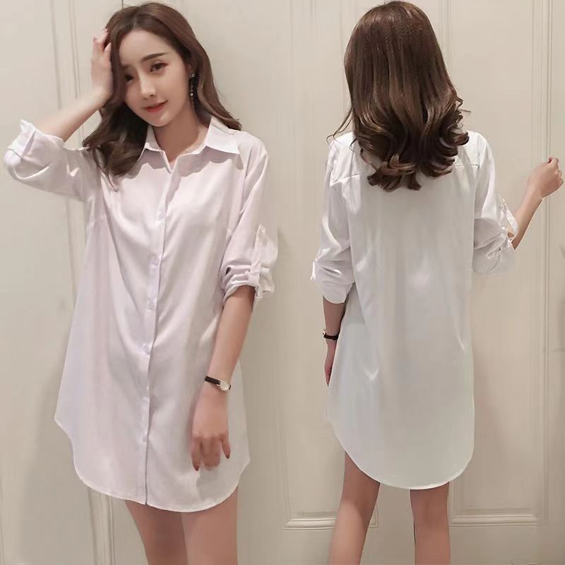 白衬衫女长袖春夏韩版新款百搭防晒衣中长款原宿风诱惑性感睡衣裙