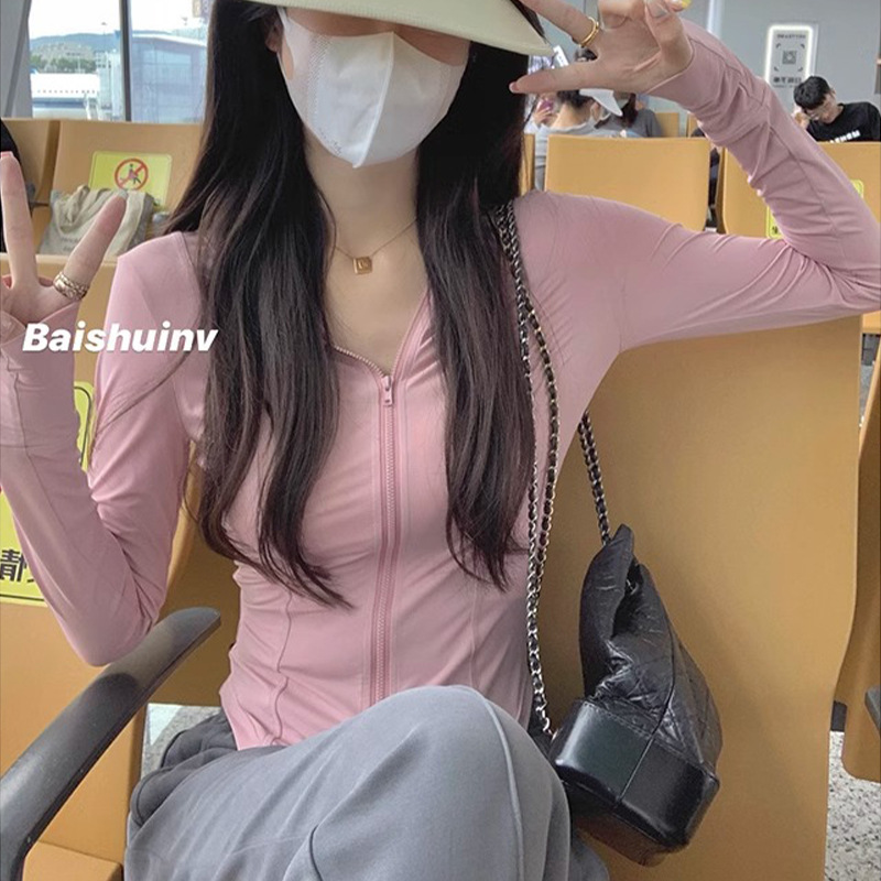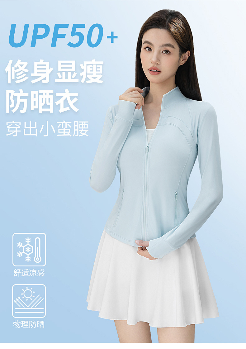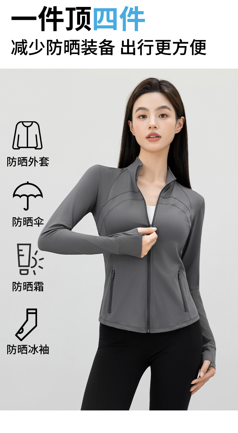 立领防晒衣女新款夏季防晒服修身透气瑜伽外套户外凉感防晒皮肤衣