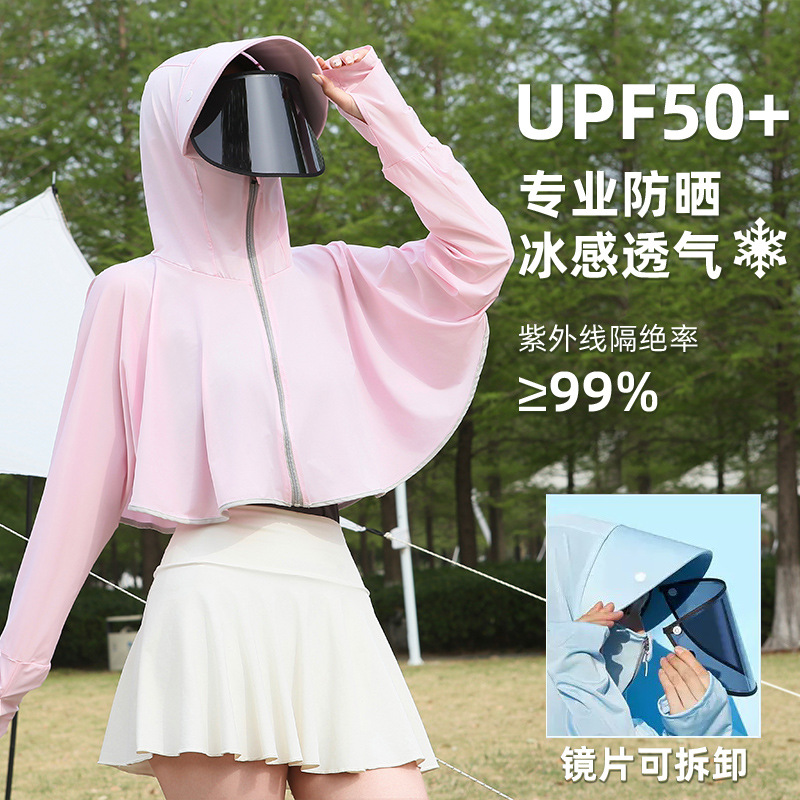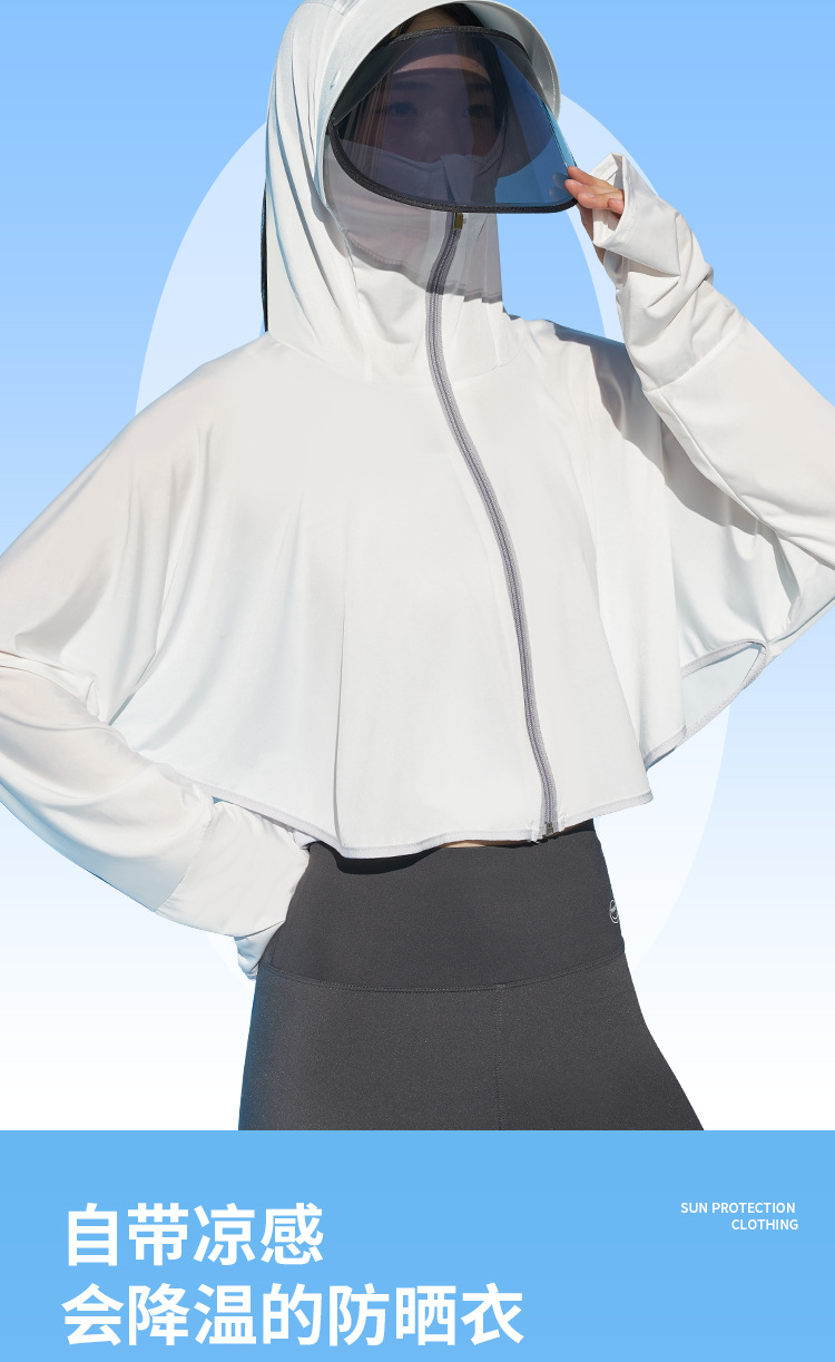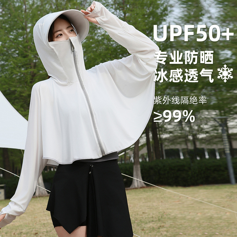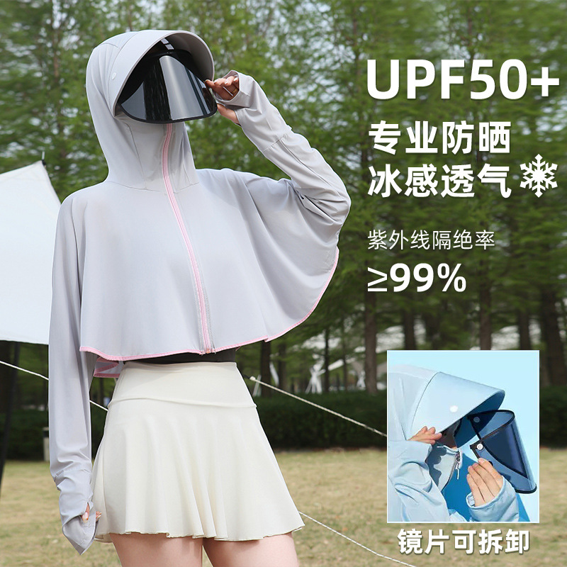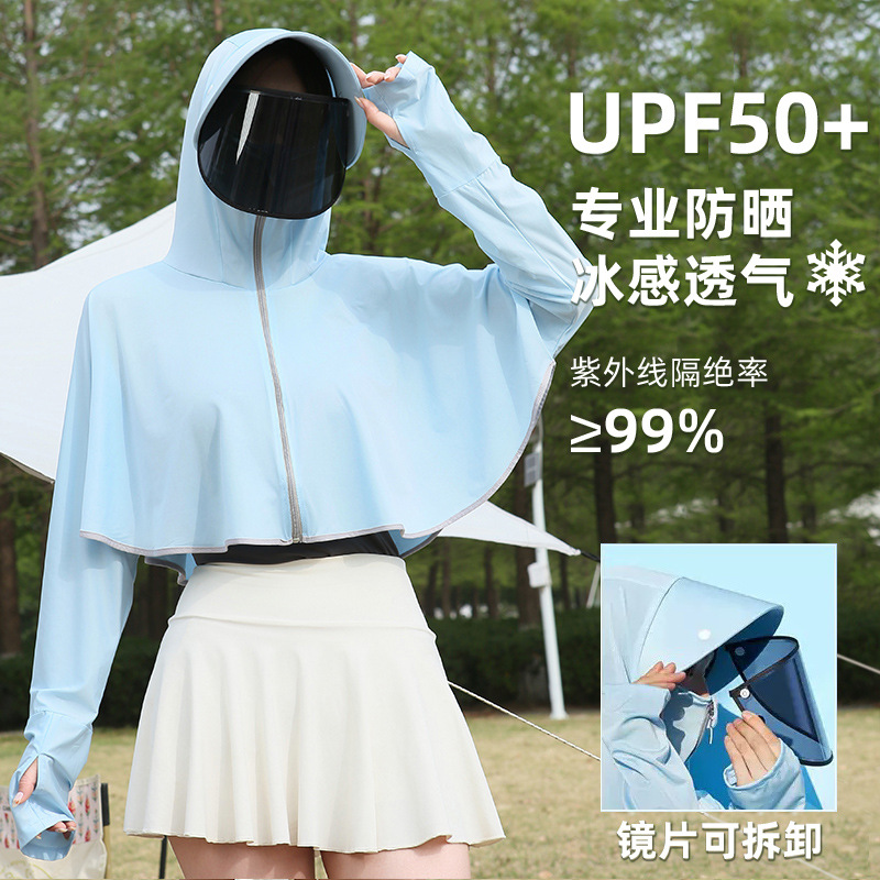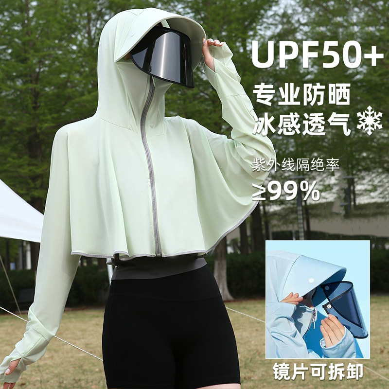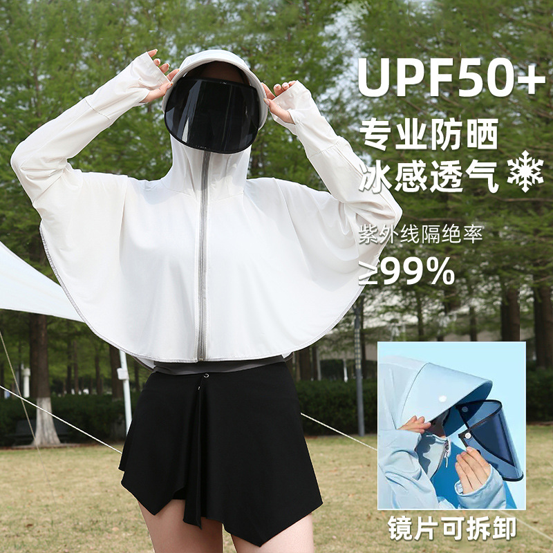 厂家批发冰丝防晒衣服开衫防紫外线斗篷式遮脸护颈面罩透气皮肤衣