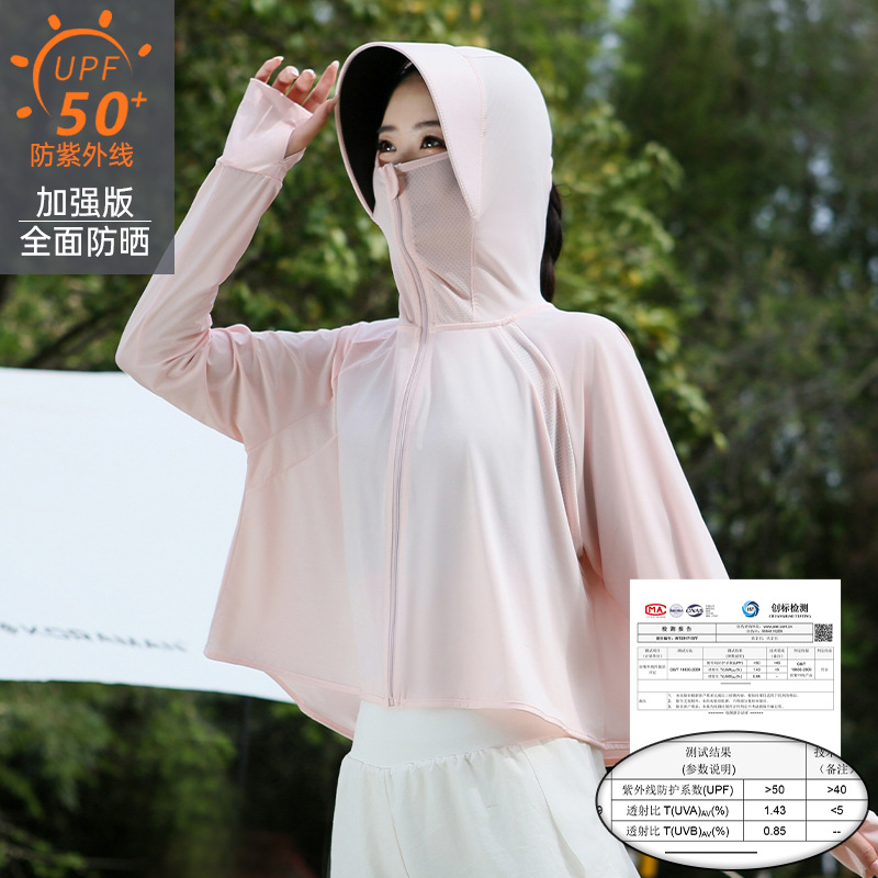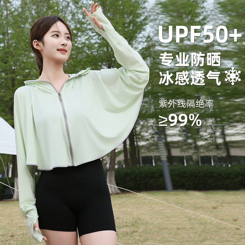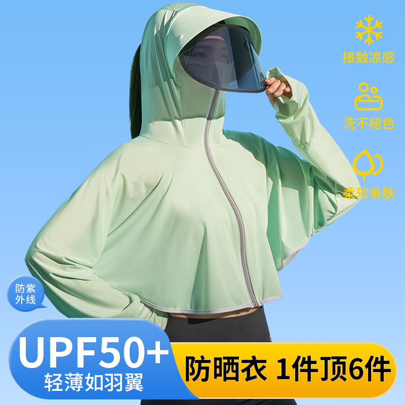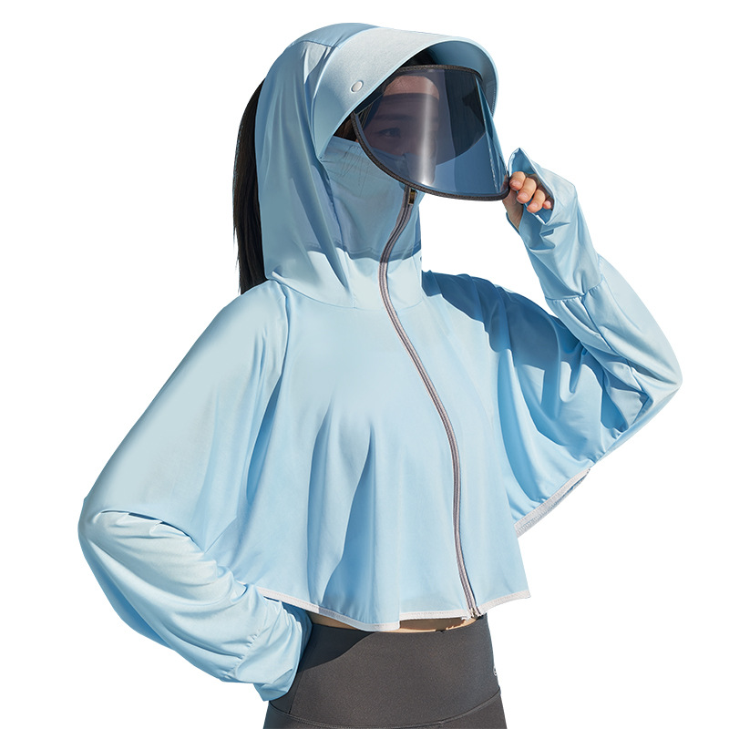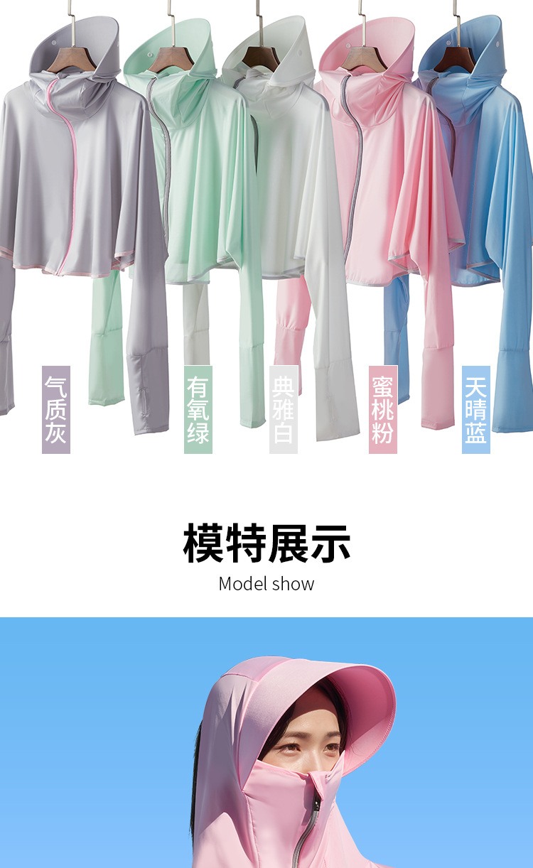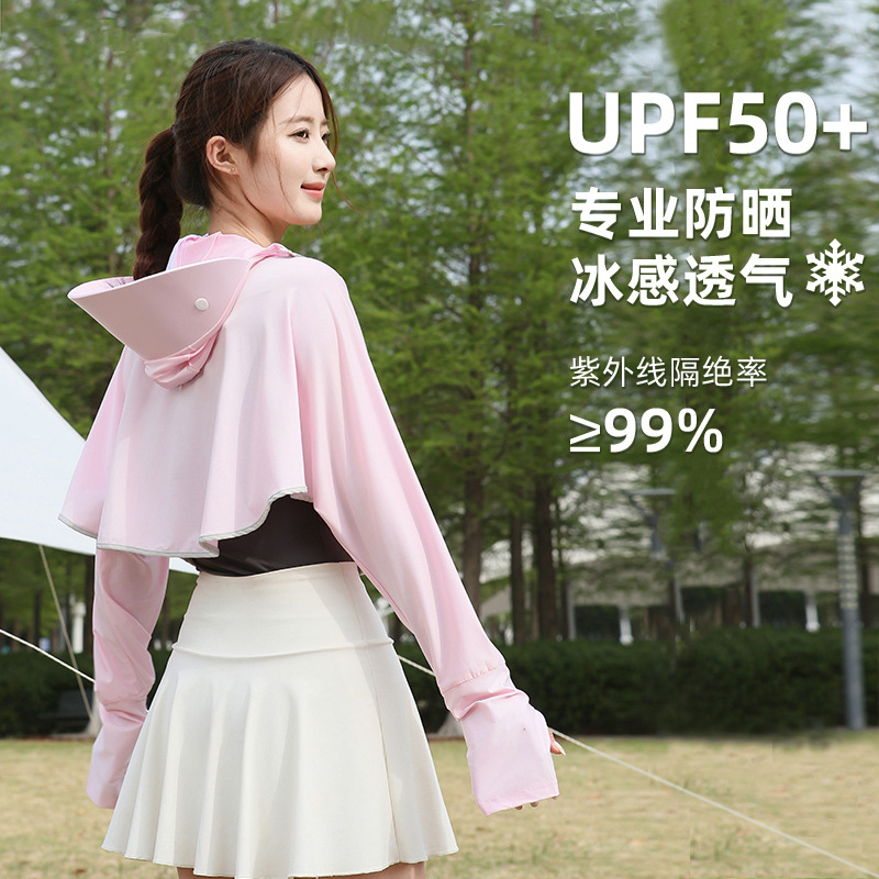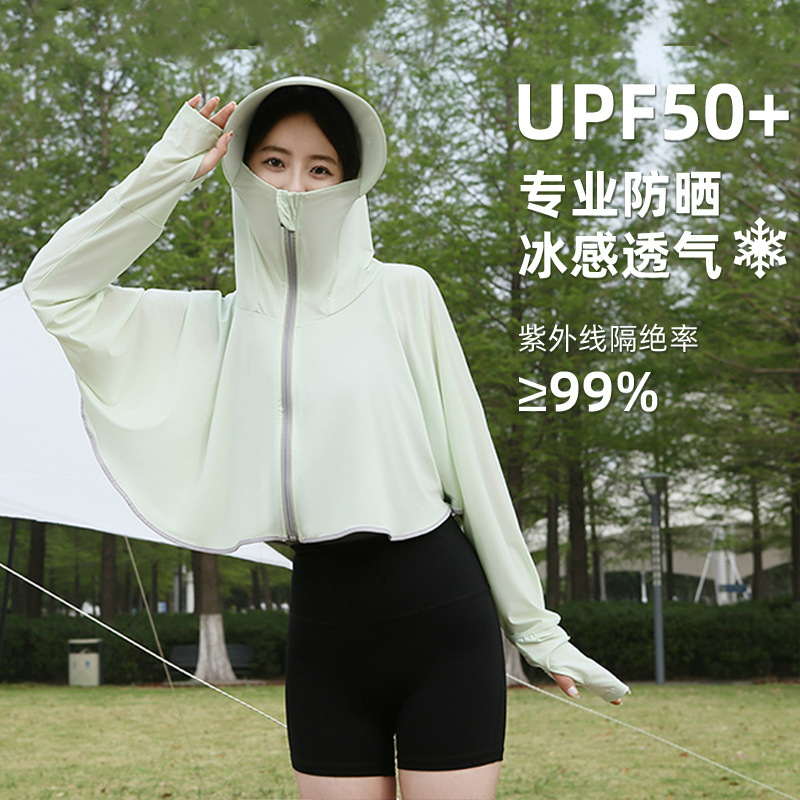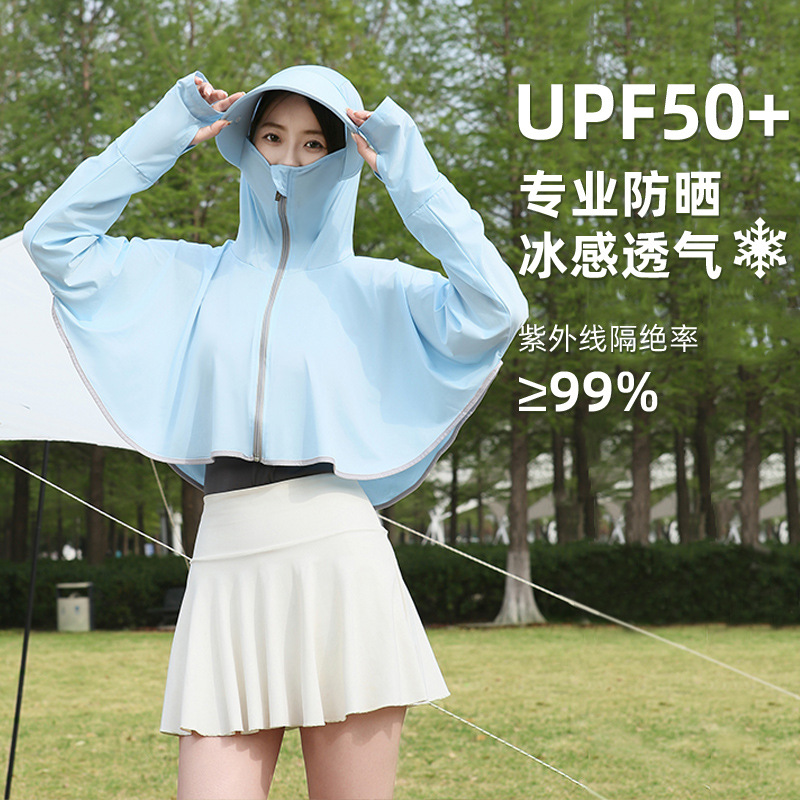 厂家批发冰丝防晒衣服开衫防紫外线斗篷式遮脸护颈面罩透气皮肤衣