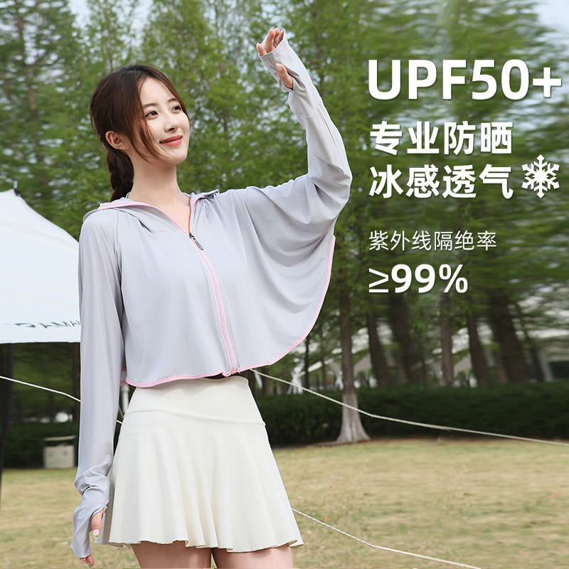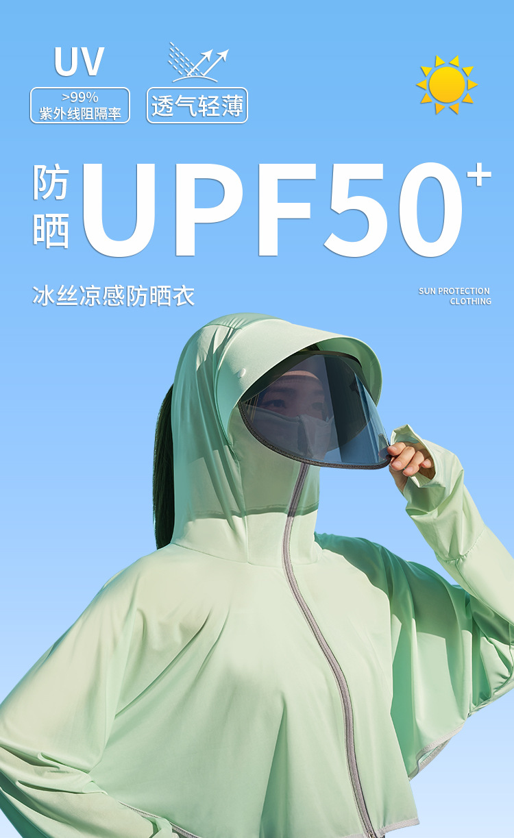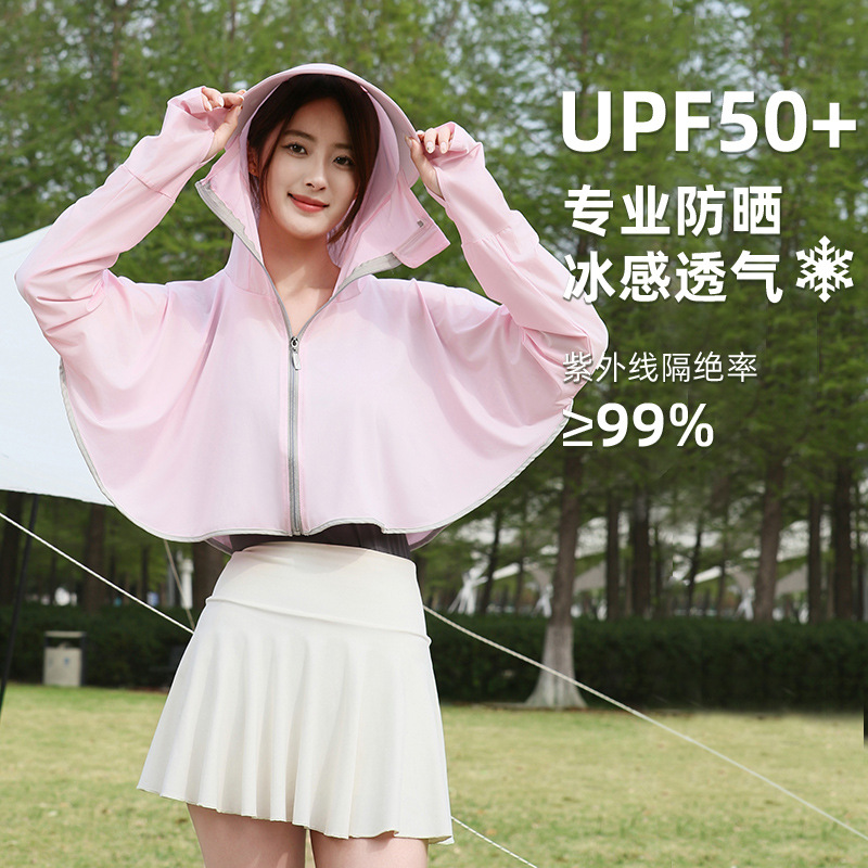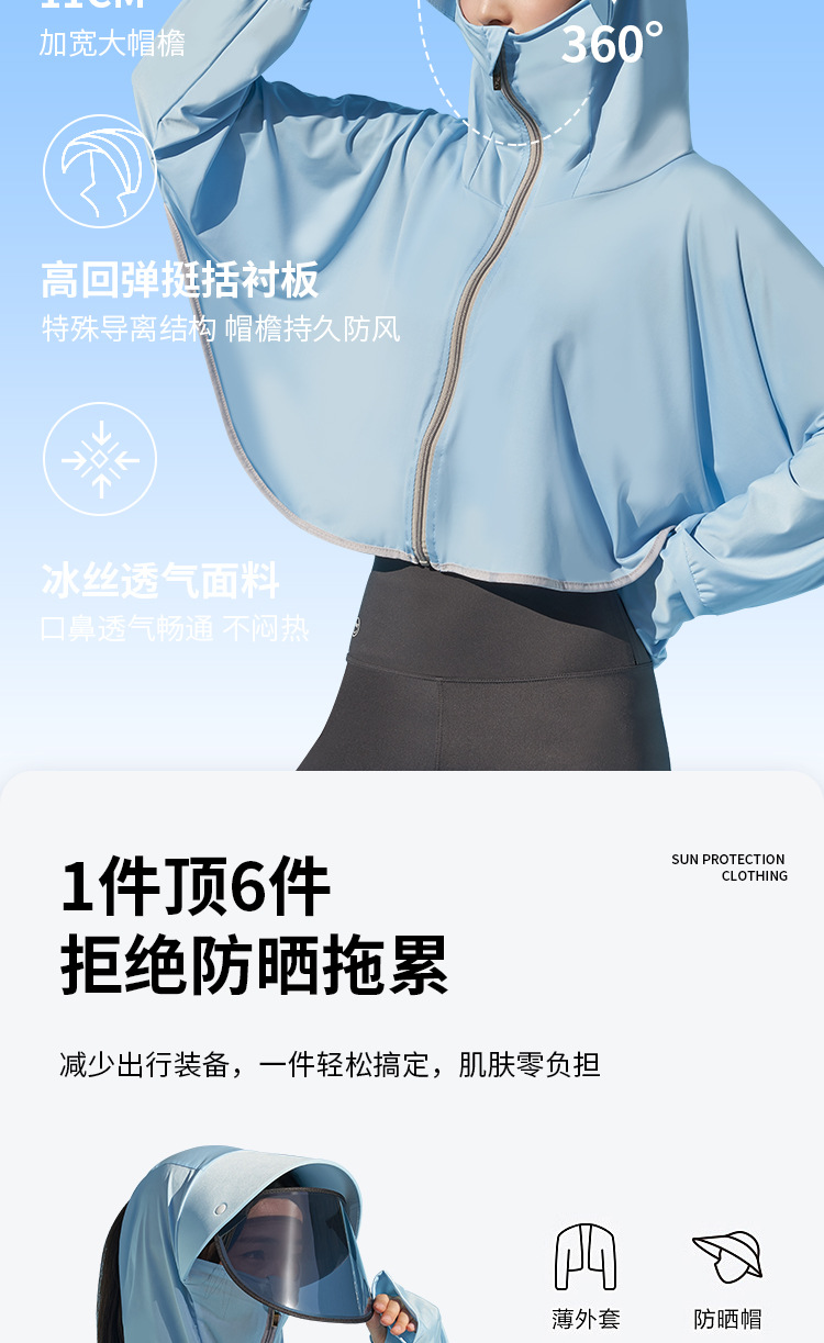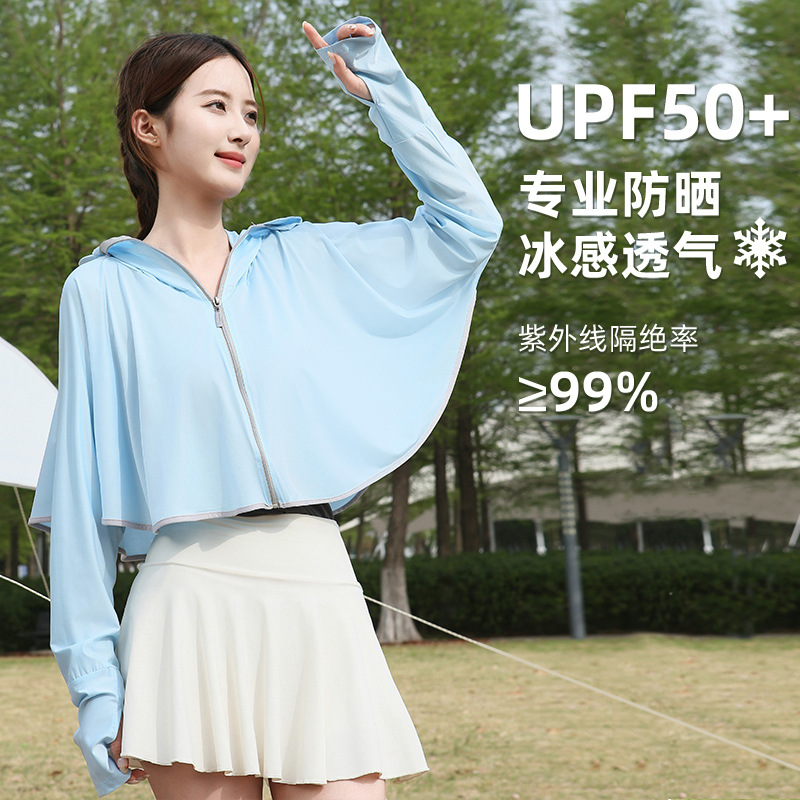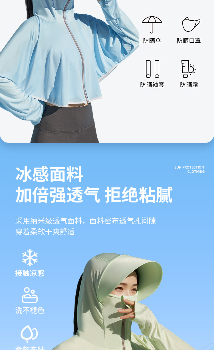 厂家批发冰丝防晒衣服开衫防紫外线斗篷式遮脸护颈面罩透气皮肤衣