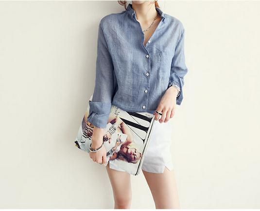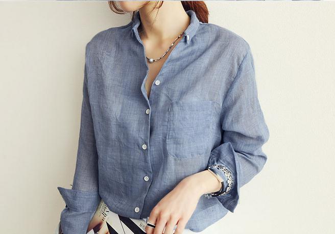 2023女装跨境新款女装时尚休闲棉麻衬衫 女长袖 宽松 薄 防晒衣