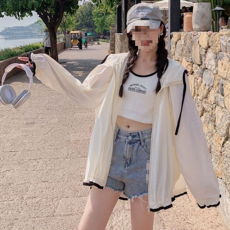 2025新款时尚连帽防晒衣女夏季长袖薄款外套韩版宽松透气防晒服