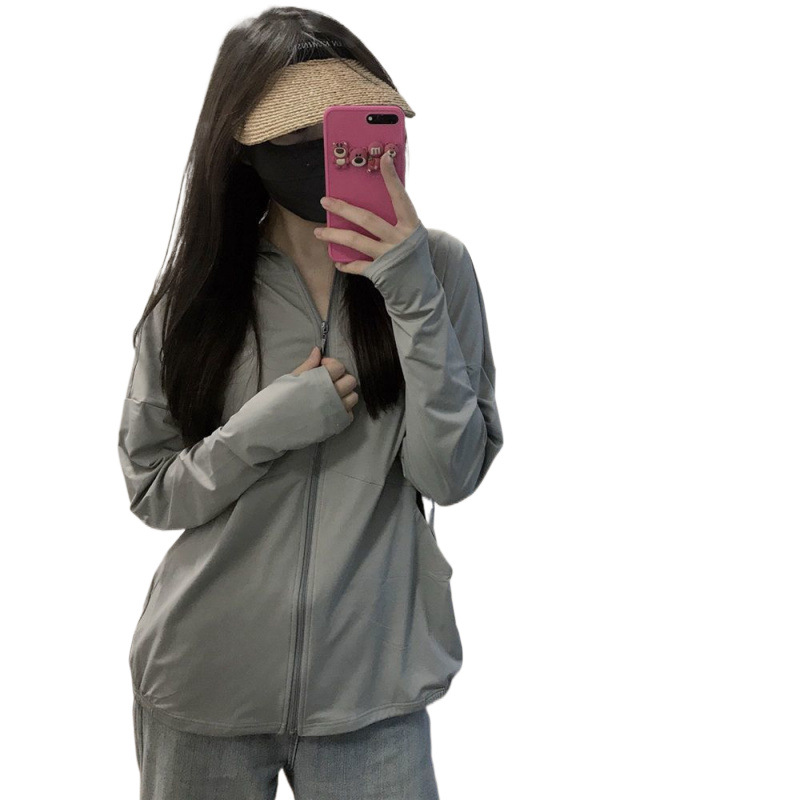 灰绿色正肩冰丝防晒衣女新款夏季防晒服透气薄款外套宽松休闲