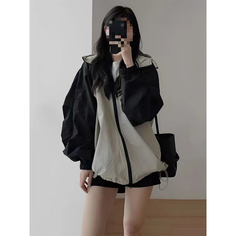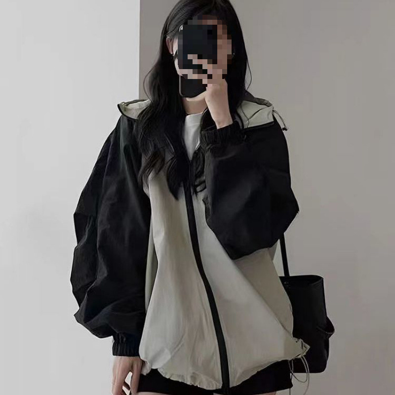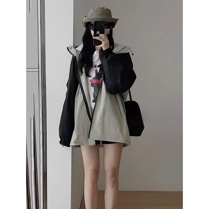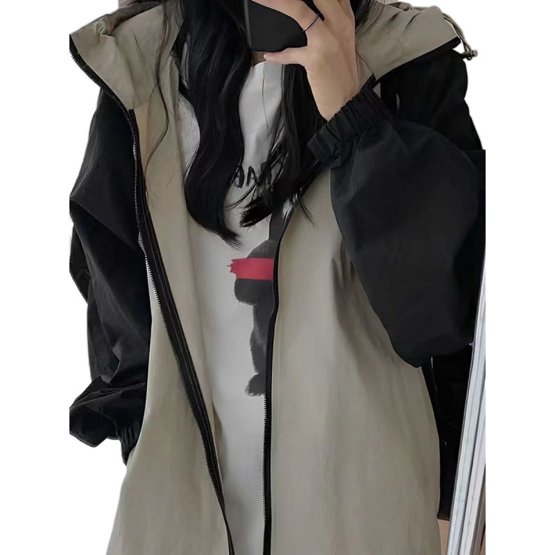 拼色薄款冲锋衣外套女2025新款夏季复古户外宽松轻薄透气防晒衣潮
