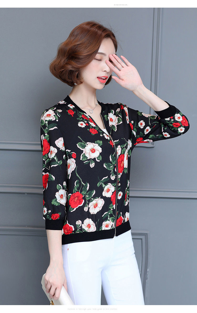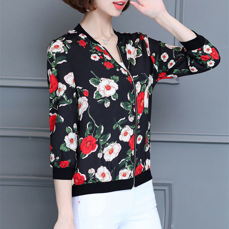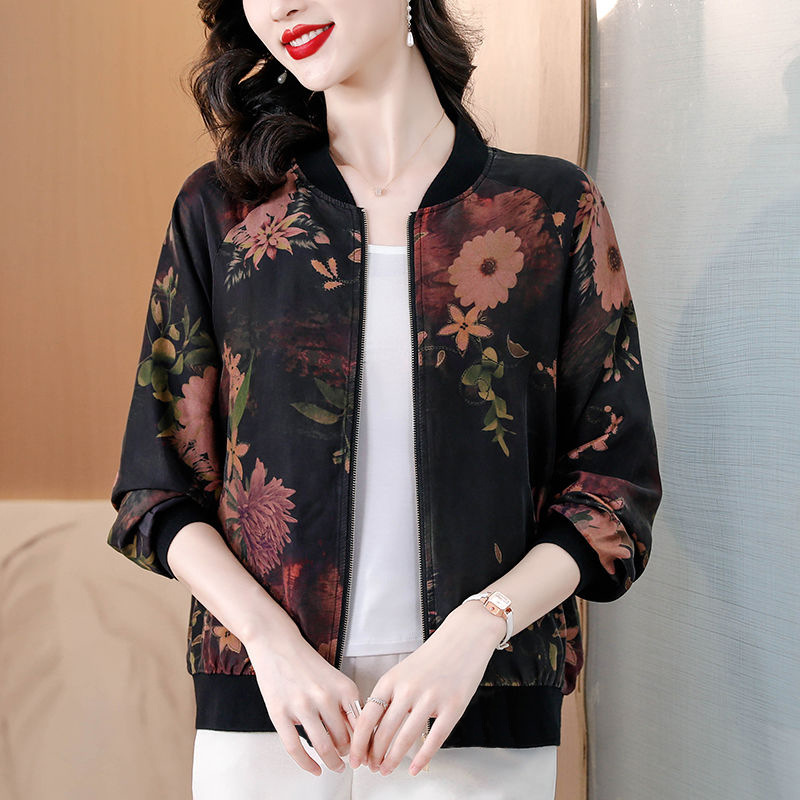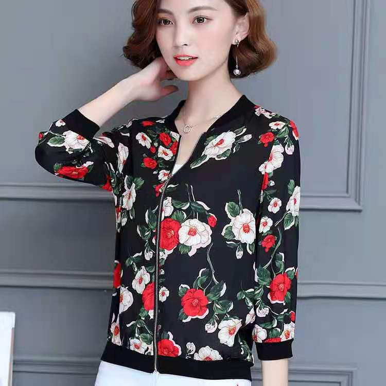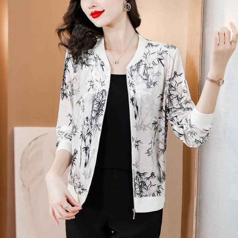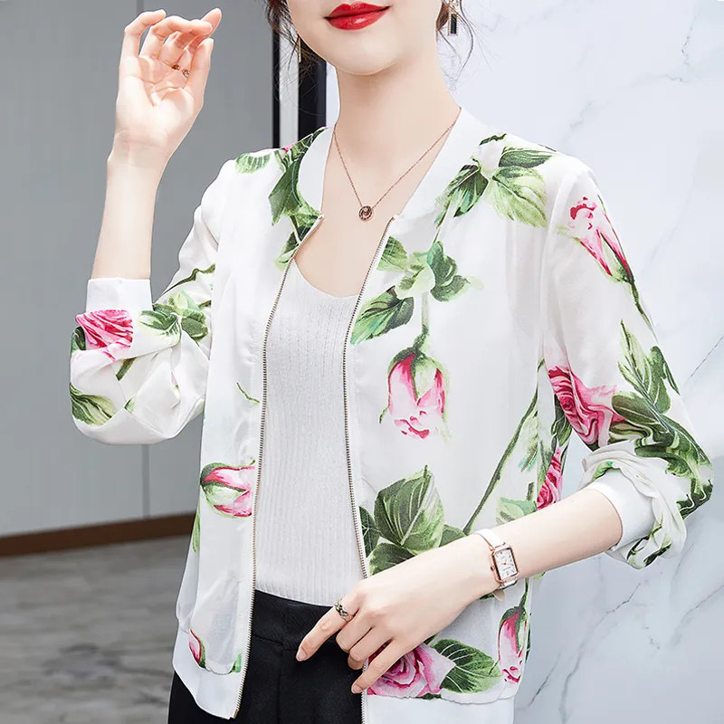 薄外套女大码2024年新款印花薄款防晒开衫中老年妈妈装拉链上衣服