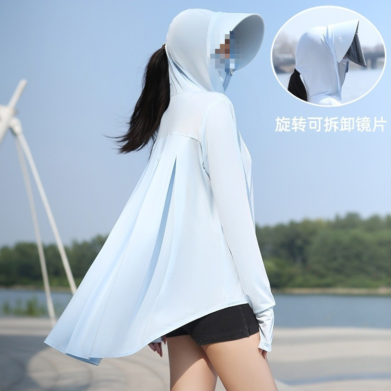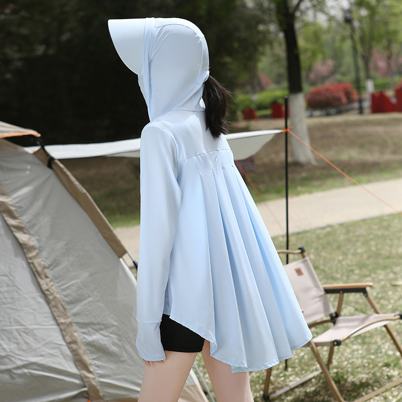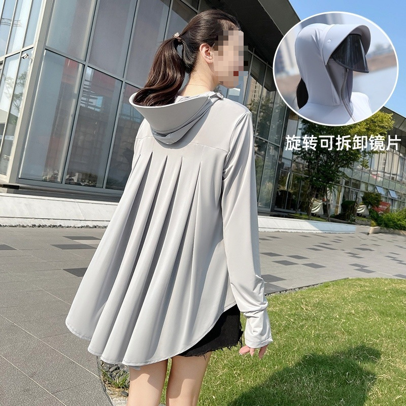 2025夏季中长款防晒衣女新款户外防紫外线冰丝凉感透气防晒服厂家