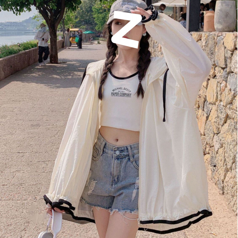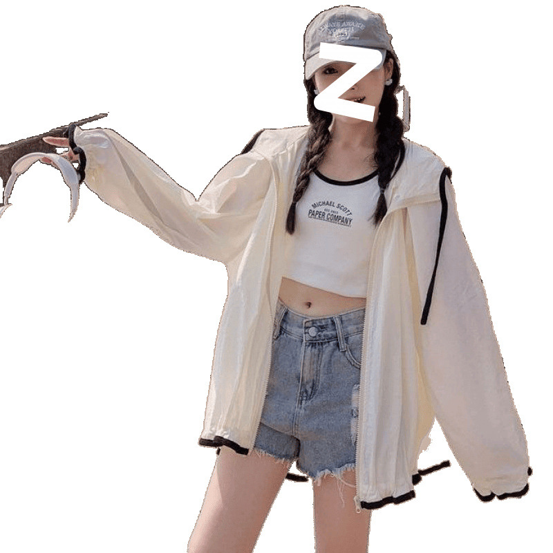 2025新款时尚连帽防晒衣女夏季长袖薄款外套韩版宽松透气防晒服