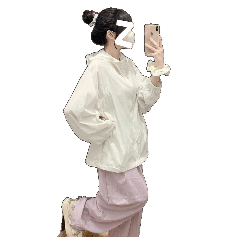 白色防晒衣女款2025新款夏季薄款透气连帽开衫休闲运动外套防晒服