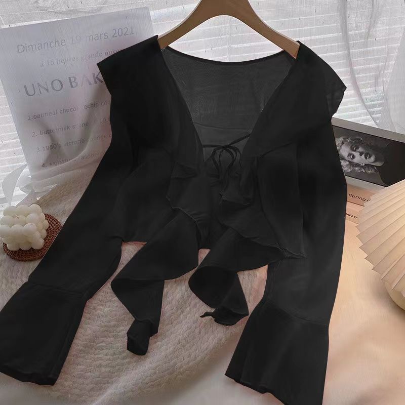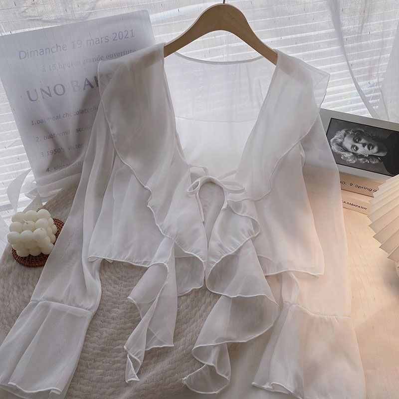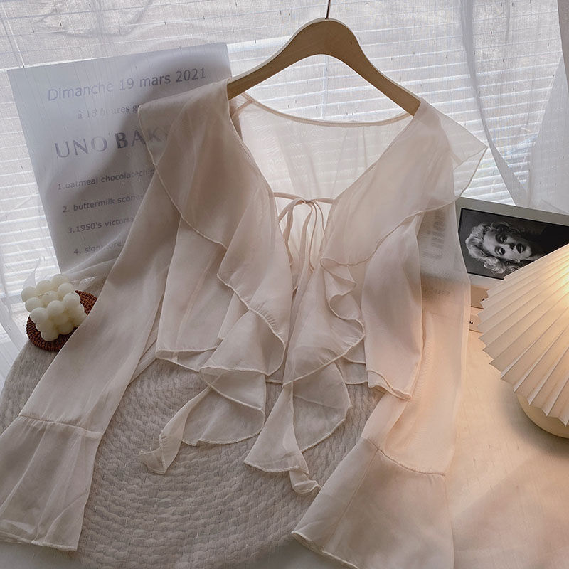 大码荷叶边雪纺防晒衣女装胖mm夏季长袖外穿空调开衫娃娃衫上衣