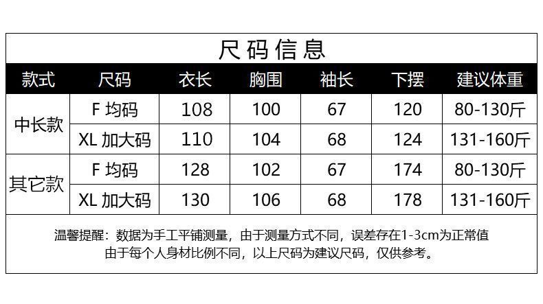 | quick size selection 131/80.00kg(尺码快选 131/160斤) | USD $13.1 | 999 piece available |